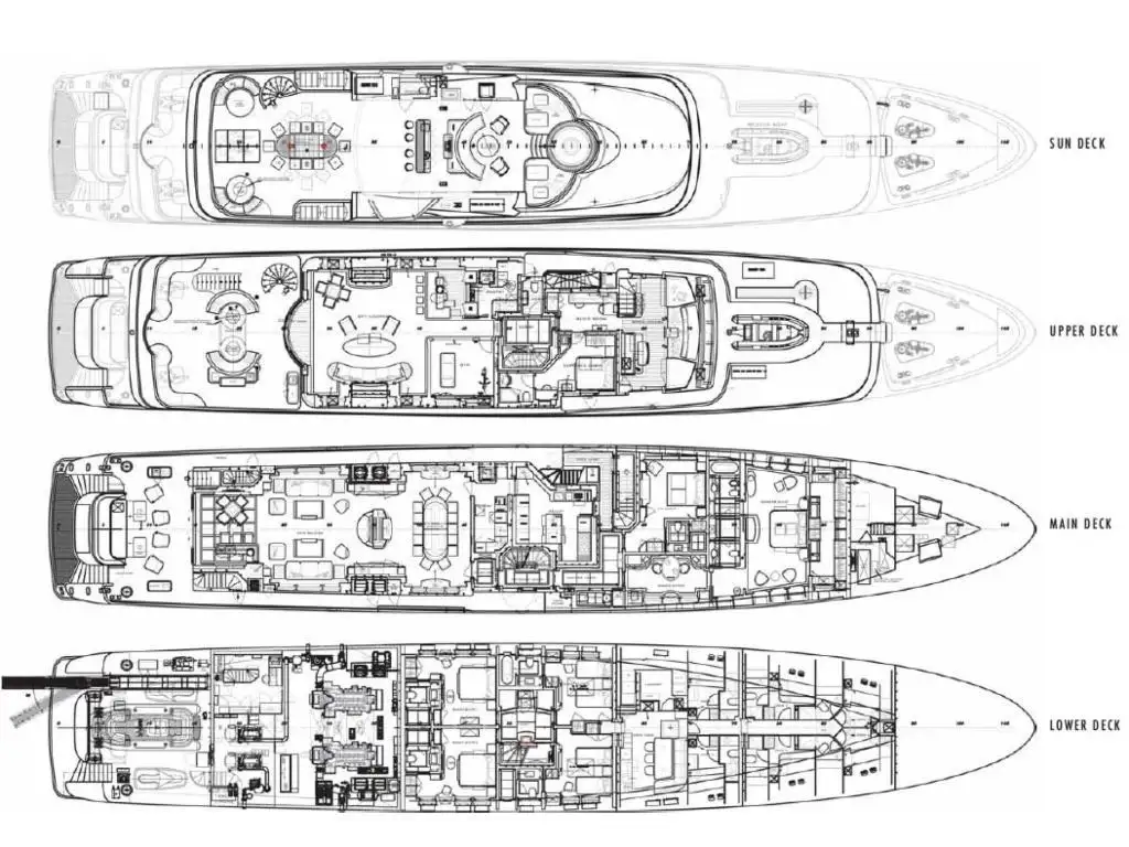 The 54.7m (179.4ft) RARE FIND is a stunning charter yacht built by Turquoise Yachts. Delivered in 2009 and refitted in 2023, her blend of al fresco spaces and classically styled interiors make her the perfect charter yacht for fun and relaxation on and off the water. Wake up with a refreshing morning swim or a workout in the air-conditioned gym on the upper deck, working up an appetite for a leisurely breakfast at one of a number of al fresco dining set ups. One morning perhaps you could choose the covered dining area on the upper deck, and then the next day a different setting, just to mix it up a little.