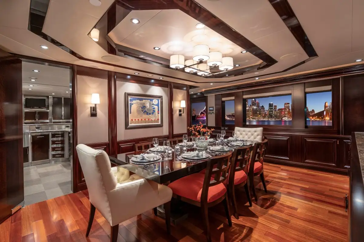 Another restaurant with its own marina – just a quick call from your charter team on the VHF and you'll be ready to enjoy a unique yacht charter experience from this New England beach house-style dining room on the water.