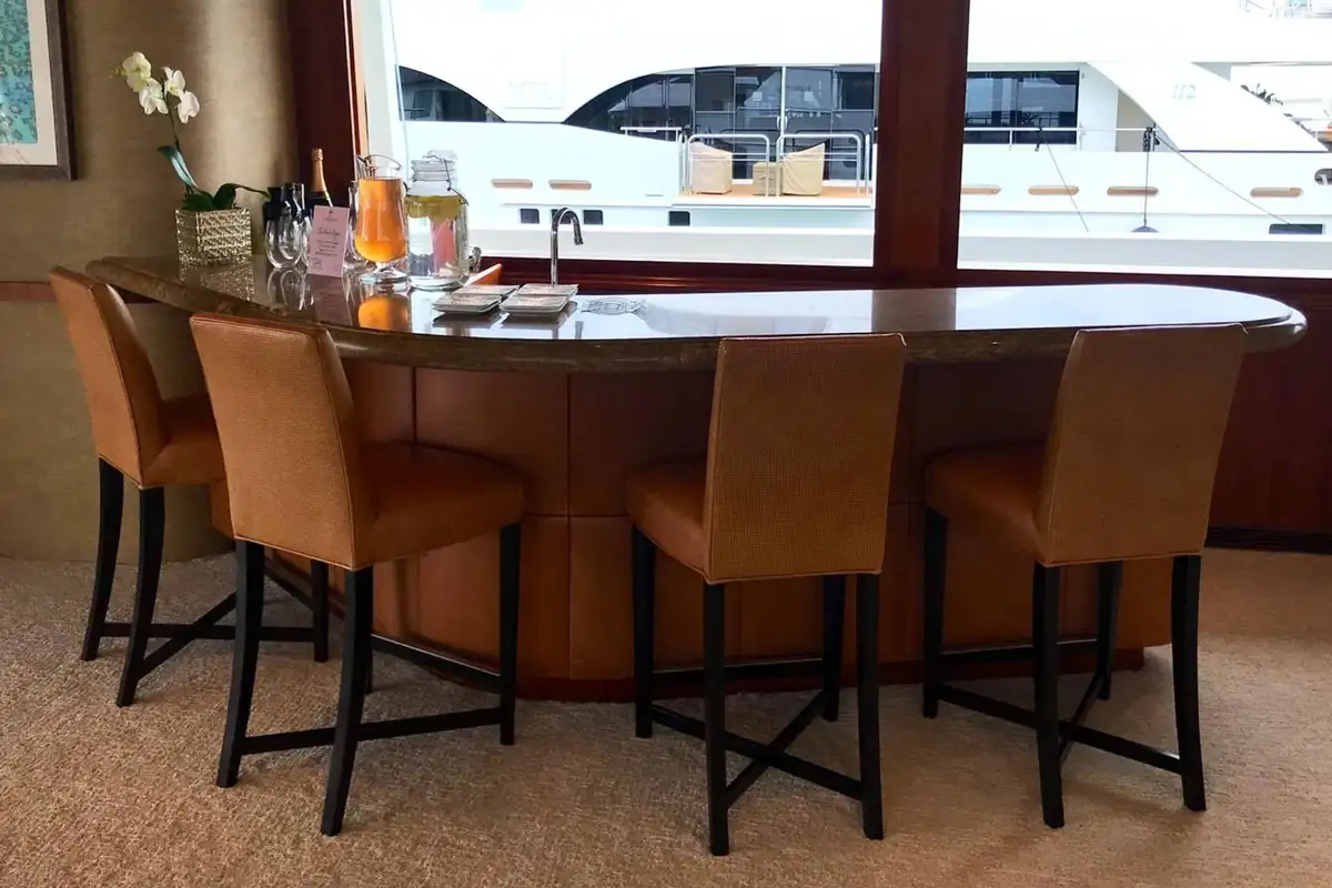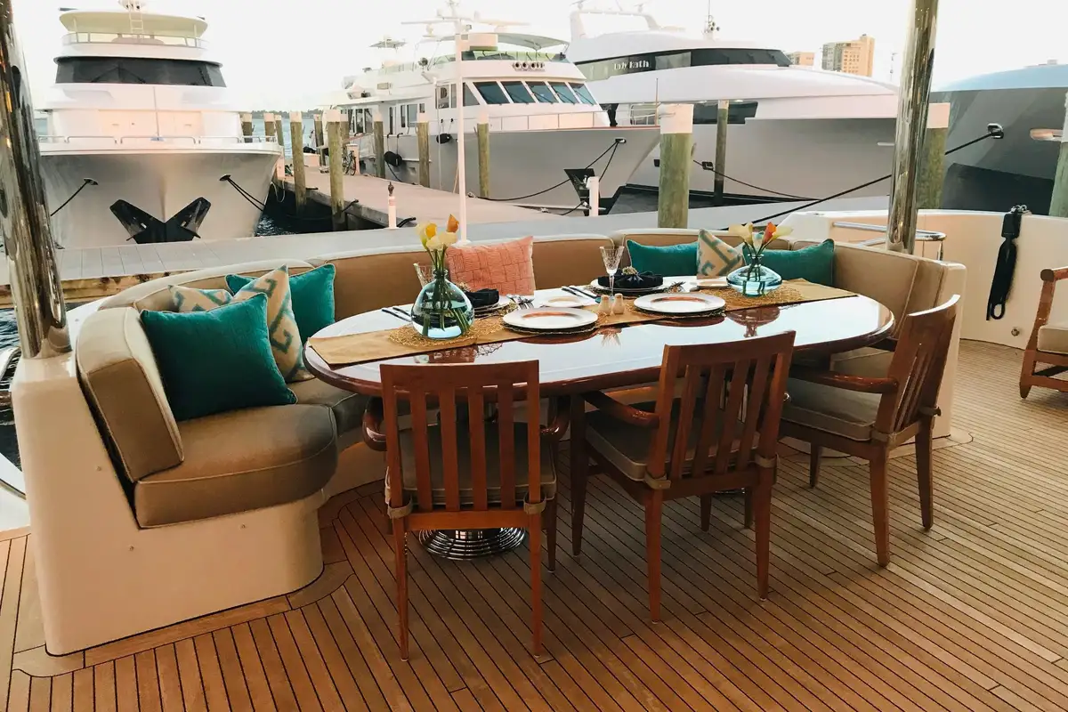 Another restaurant with its own marina – just a quick call from your charter team on the VHF and you'll be ready to enjoy a unique yacht charter experience from this New England beach house-style dining room on the water.
