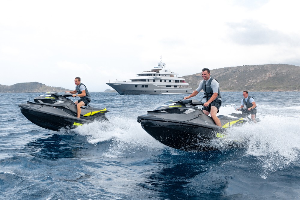 Activity and exploration are at the heart of RIO’s charter experience. Her extensive toy garage includes SeaBobs, jetskis, inflatable water parks, scuba equipment for certified divers, and an array of kayaks, paddleboards, and eScooters. A full beach set-up, which comes loads with a gazebo, BBQ and Starlink internet, brings the five-star experience ashore.