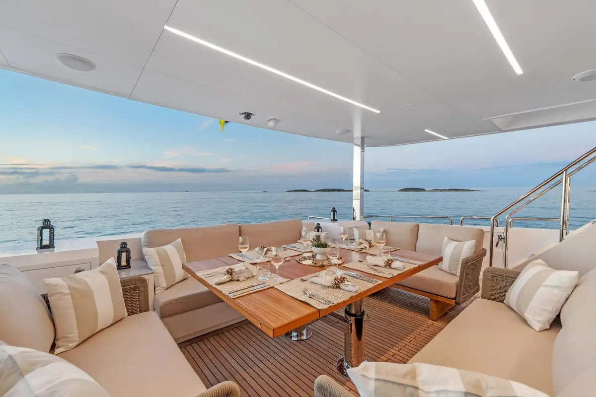 - Jacuzzi on the foredeck giving way to gorgeous views while underway or at anchor