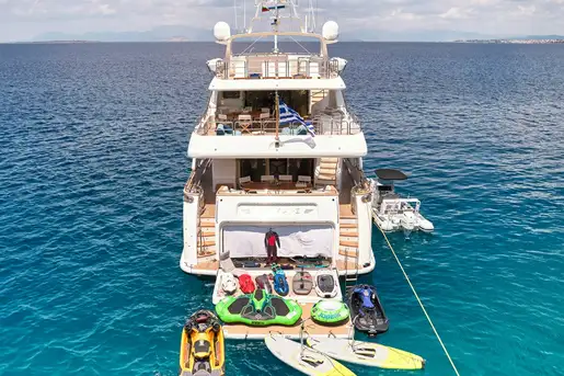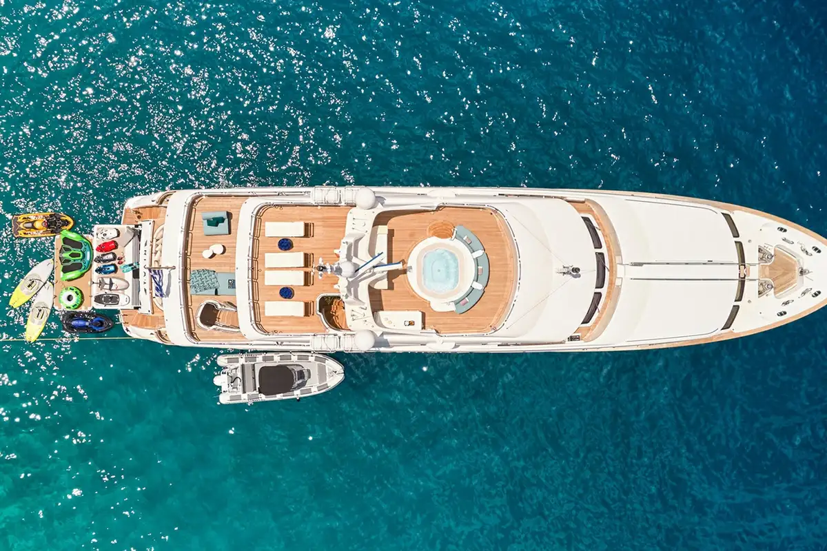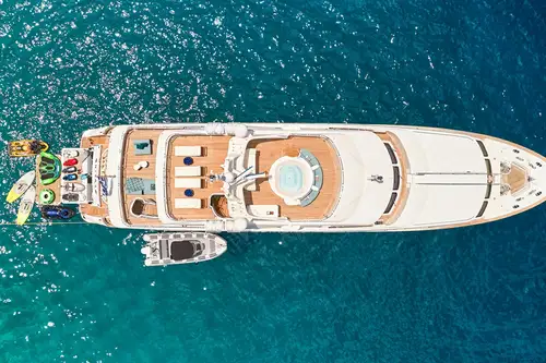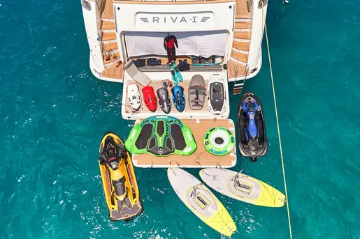 The main guest tender is a high-spec 6.6m (22ft) RIB and she’s generously equipped with watersports equipment and toys. You’ll have a choice of jetskis, a fleet of SeaBobs, an eFoil board, an electric surfboard, Hobie paddleboard, waterskis in kids’ and adults’ sizes, and a giant waterslide from the sun deck straight into the sea. Come aboard and enjoy!