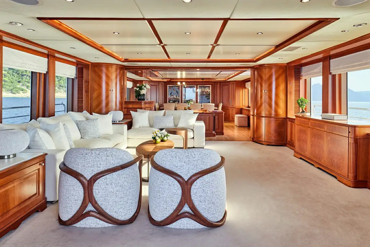 Beautifully built by Benetti, styled by Zuccon, extensively refitted just two years ago and extremely well maintained, RIVA is a smart choice for your next Mediterranean charter holiday. Her iconic and distinctive exterior look gives this 37m (120ft) yacht a graceful presence on the water and there’s air of timeless elegance throughout her opulent tri-deck interior.