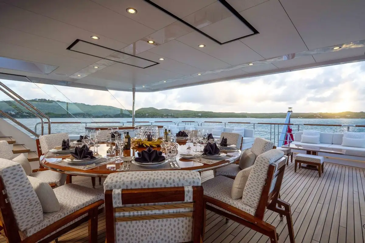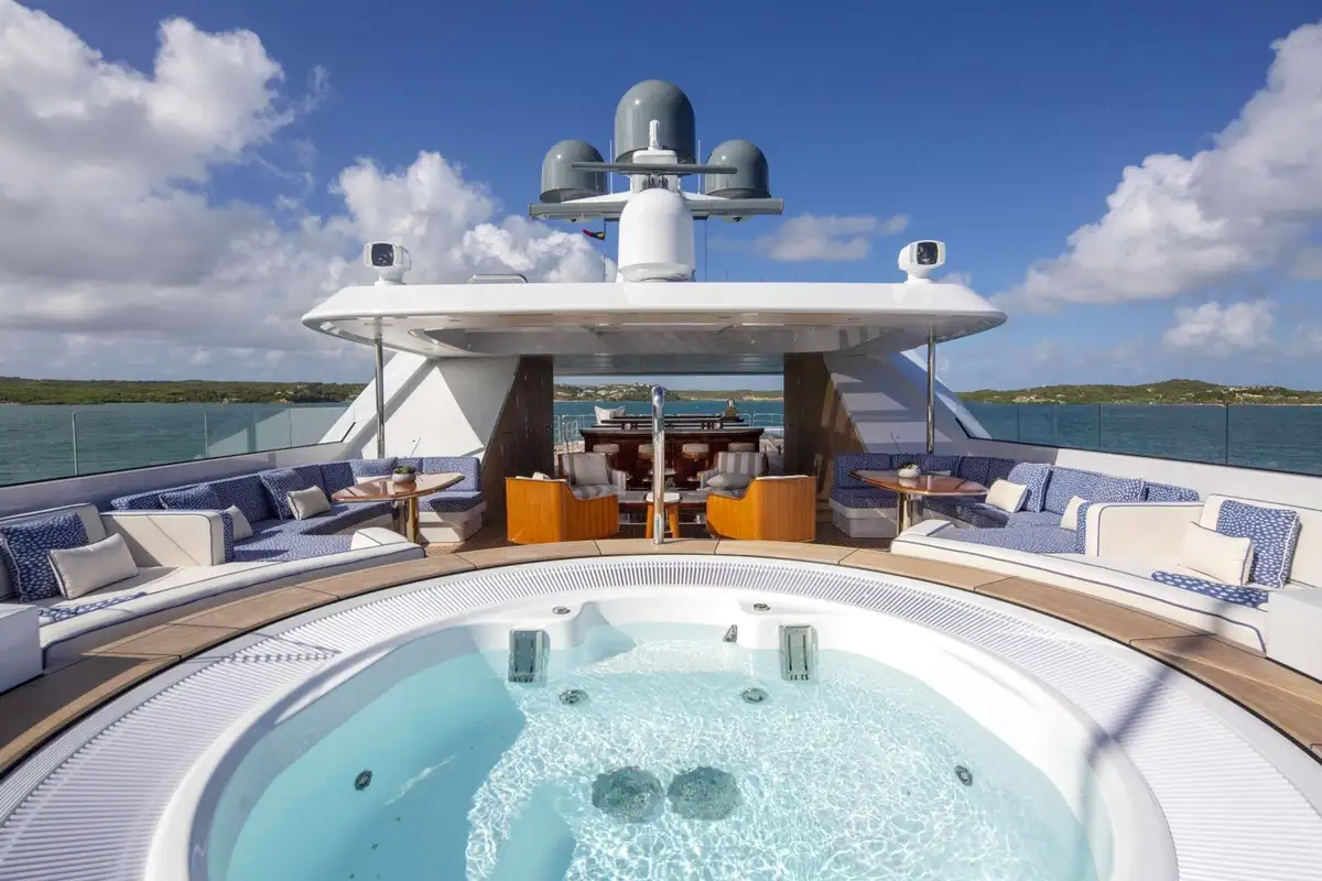 ROCK.IT has the right amount of everything you could possibly want for a fun-filled charter. Huge outside space and a fantastic list of watertoys and leisure facilities combine to make her ideal for al fresco living. Her large sun deck offers endless relaxation areas. Take a refreshing dip in the sun deck jacuzzi and relax on the sumptuous sun pads before stepping into the semi enclosed al fresco dining area. A skylight at the centre of the yacht dims automatically depending on the strength of the sunlight, and should the wind pick up while the guests are dining, the area can be sheltered from the breeze with sliding panels.