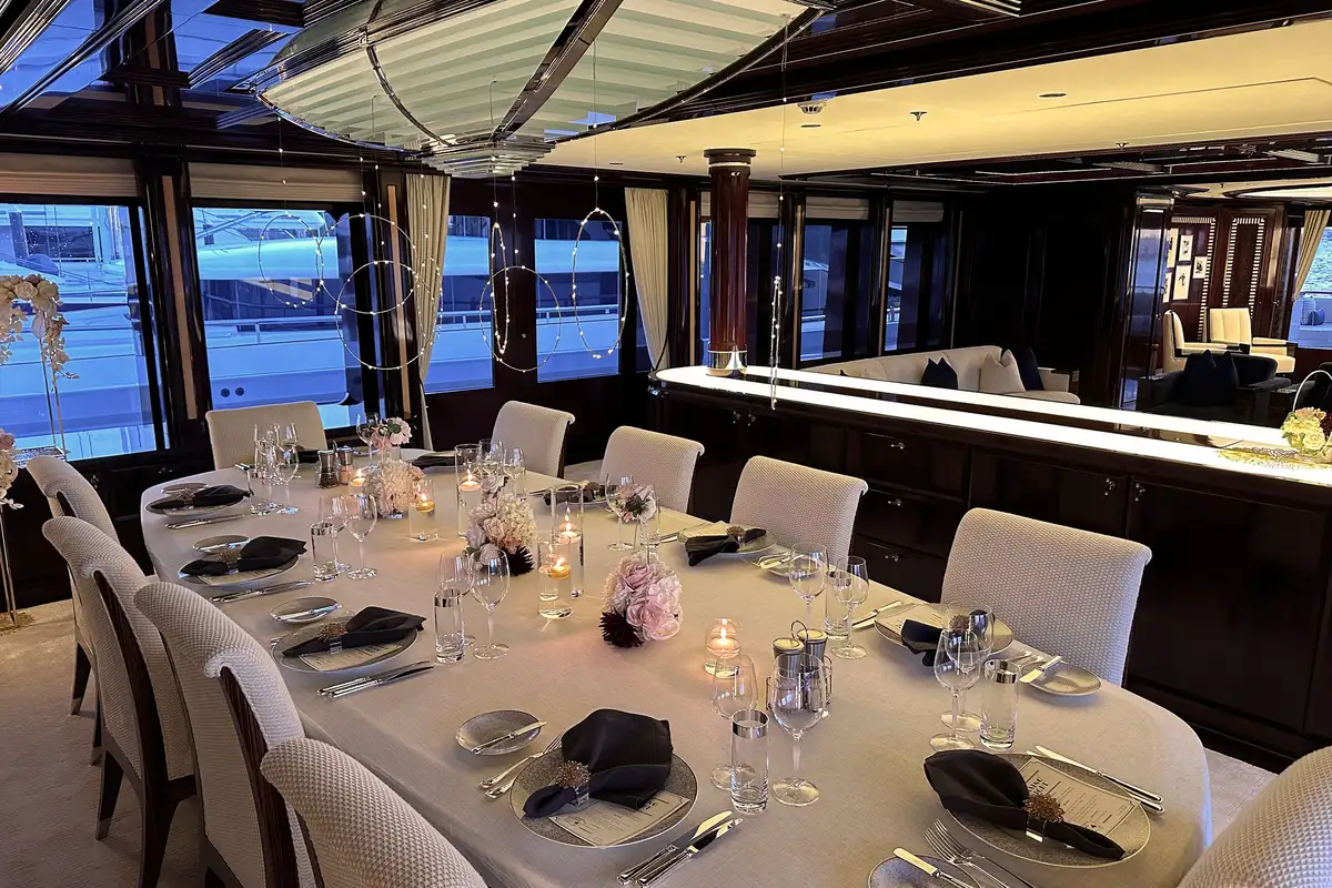Back on board, enjoy a sundowner in the comfort of the sumptuous seating on the main deck aft or a pre-dinner cocktail at the sky lounge bar. A gastronomic extravaganza can be served al fresco on the bridge deck aft, or for a more formal occasion, use the main deck saloon where formal dining can be set up for up to 10 guests. Settle into the comfy sofas for a movie night or dance the night away on the tender deck. However you wish to spend your evening aboard, ROCK.IT’s crew of 15 are on hand to ensure the absolute best in comfort and service.