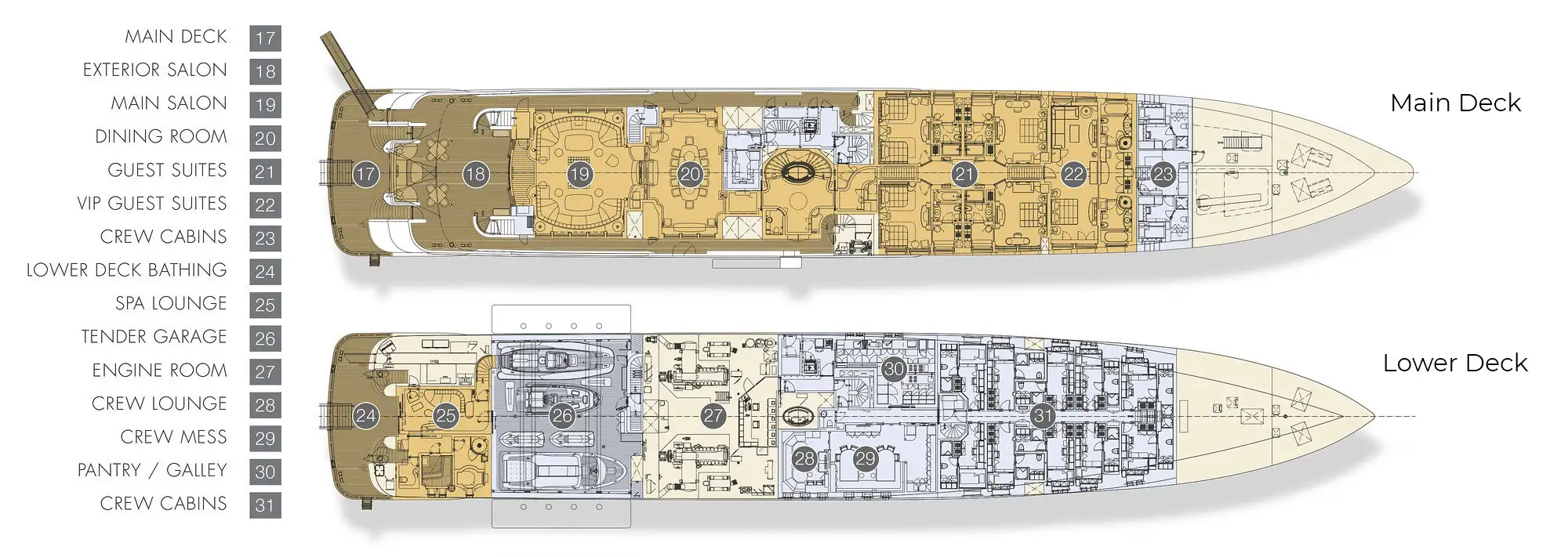 - Zero speed stabilisers to reduce any rolling motion while at anchor