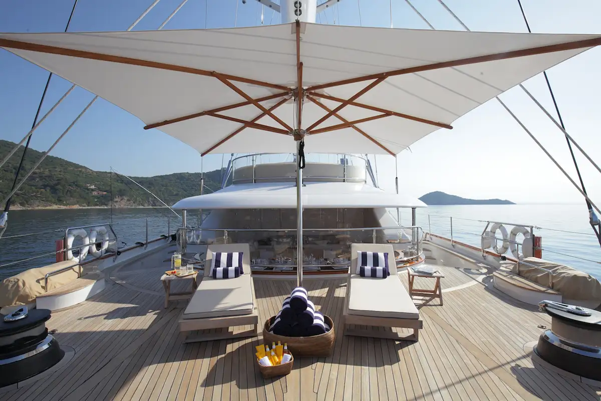 Sailing enthusiasts will be well aware of her impressive results in recent regattas – she won at the last four editions of St Barths Bucket – but she’s first and foremost a supremely comfortable cruiser. Non-sailing guests can rest assured that her superb stability gives a comfortable ride, with the added bonus of a much lower carbon footprint than a comparable motor yacht, plus the thrill and unique sensations of voyaging under sail.