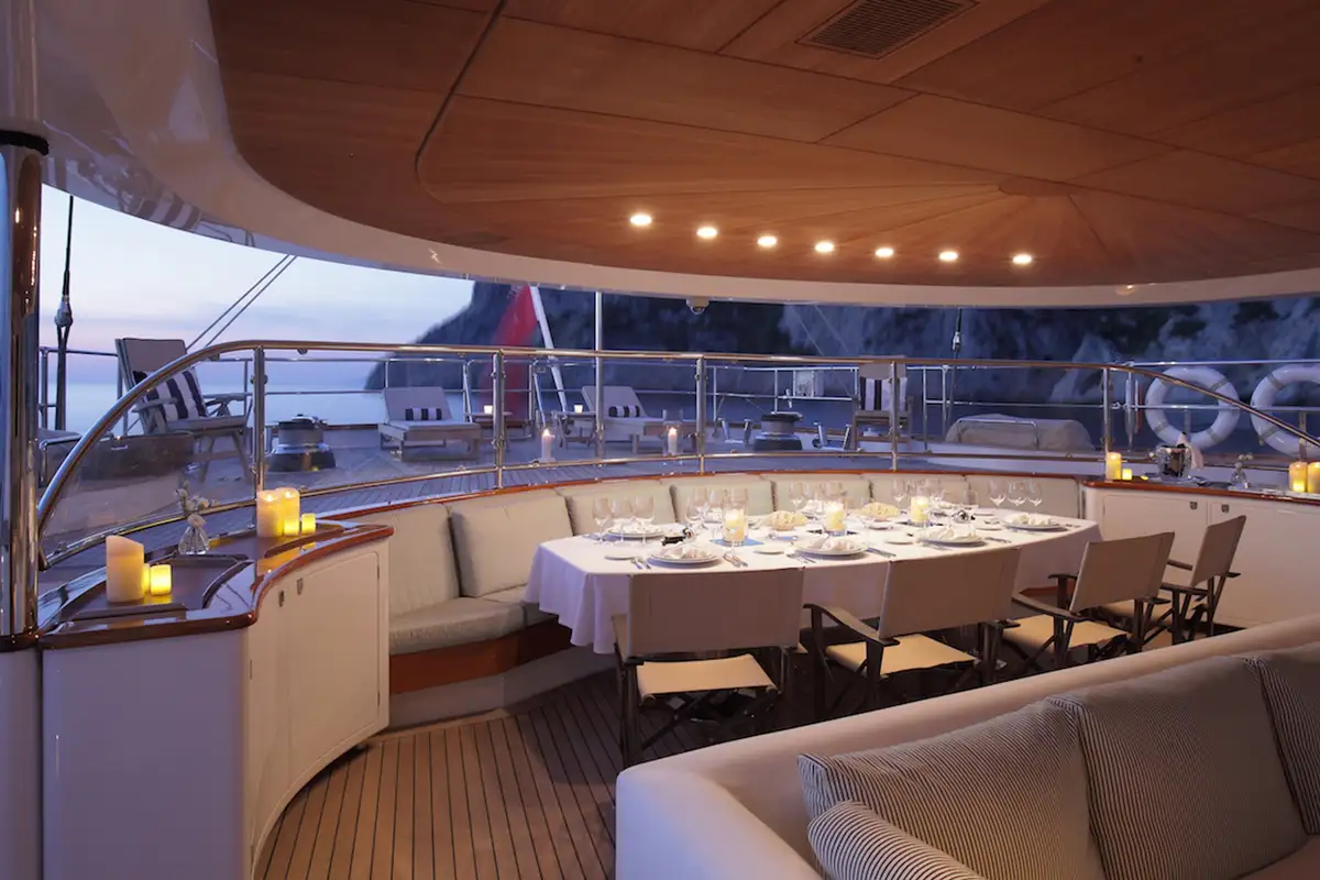 She’s designed to host up to 12 guests in grand style, with seven beautifully appointed cabins including a full-beam master suite. Her gorgeous contemporary interior is one of the rare, iconic yacht designs by Christian Liaigre and her curvaceously beautiful exterior lines will turn heads in any harbour.