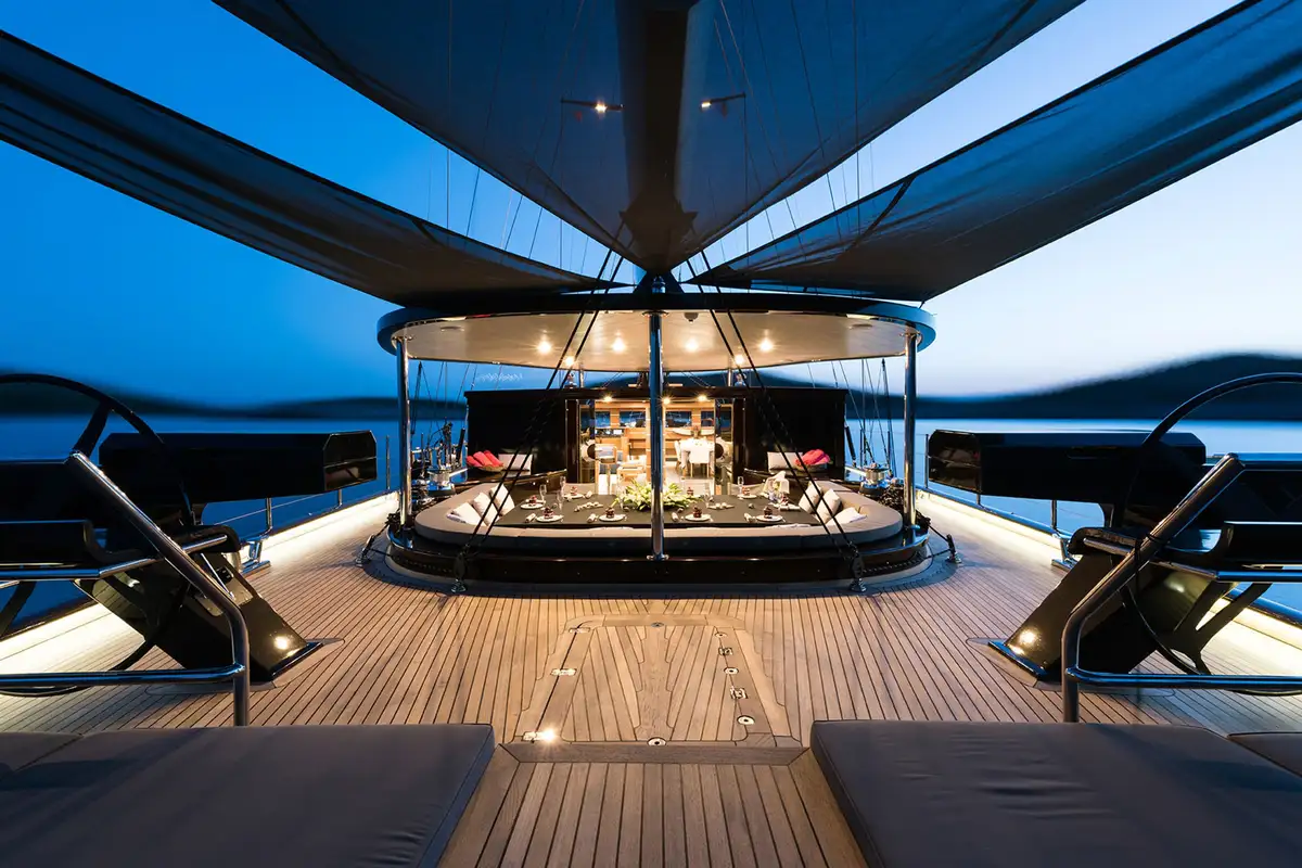 With her black sails unfurled, ROX STAR’s showcases her remarkable sailing capabilities. Take the helm under the captain’s guidance and feel the exhilarating sensation of manoeuvring this exceptional yacht through the waves, propelled by the power of the wind. Or, simply relax and watch the crew masterfully guide her on her course.