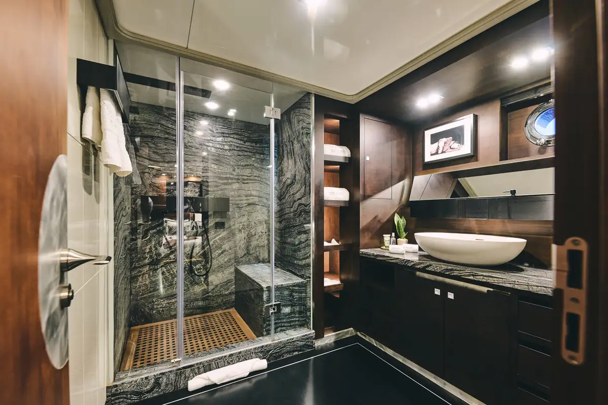 As evening approaches, retreat to your cabin to prepare for dinner. ROX STAR accommodates up to 11 guests in five double cabins, including a spacious, full-beam master stateroom featuring a king-sized bed, skylight and steam shower.