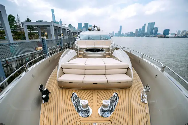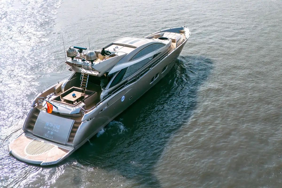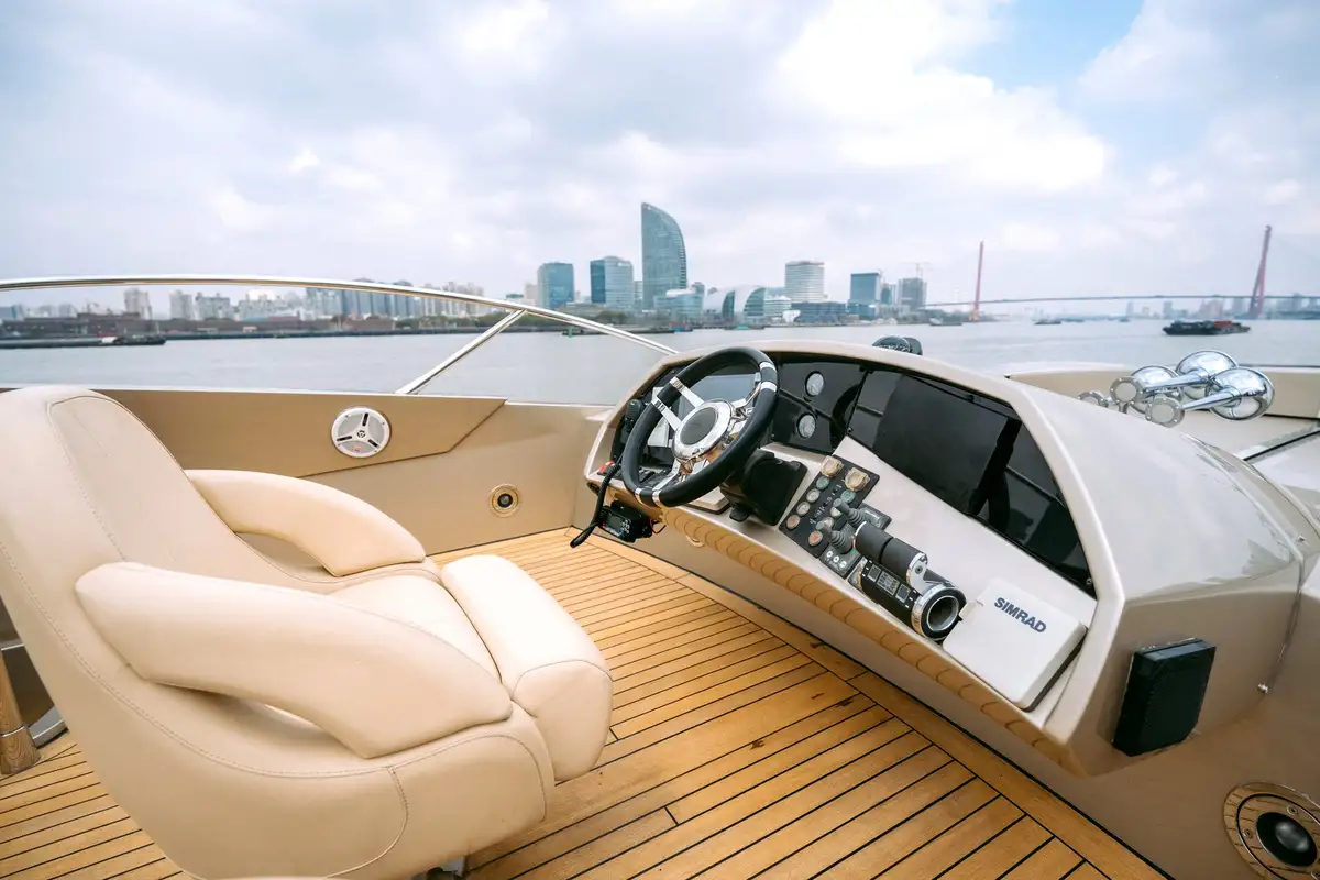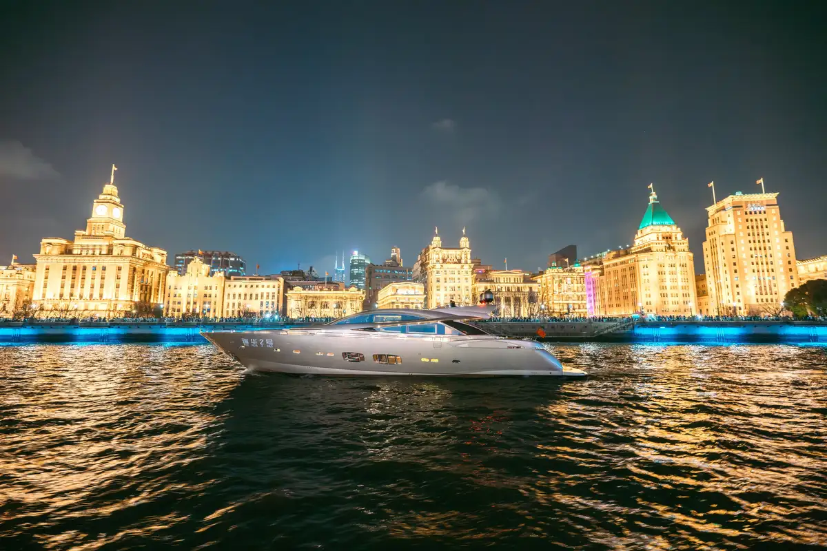 The largest and by far most luxurious yacht available to charter in the Shanghai area, RUI HUA 2 is a Sunseeker Predator 108 – an icon of contemporary yacht design. She is configured to host up to 12 guests for a private sightseeing river cruise, or a party of eight for an exclusive fine dining experience. She can also be chartered for dockside events and cocktail parties alongside Xinhua Pier.