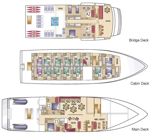 | Cabin types | 18 (17 × double/twin, 1 × single, 1 × additional berth) |