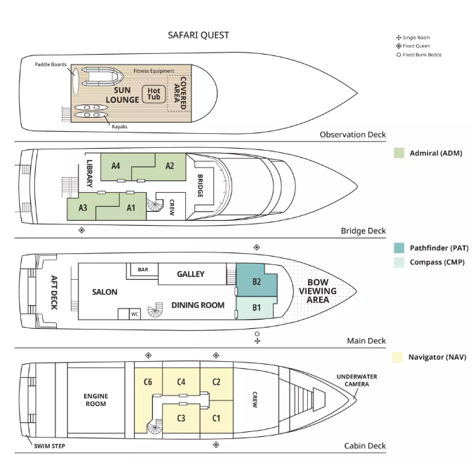 | Cabin types | 11 (4 × double, 4 × double/twin, 2 × twin, 1 × single, 1 × additional berth) |