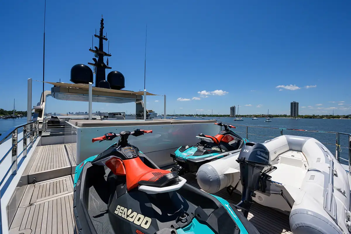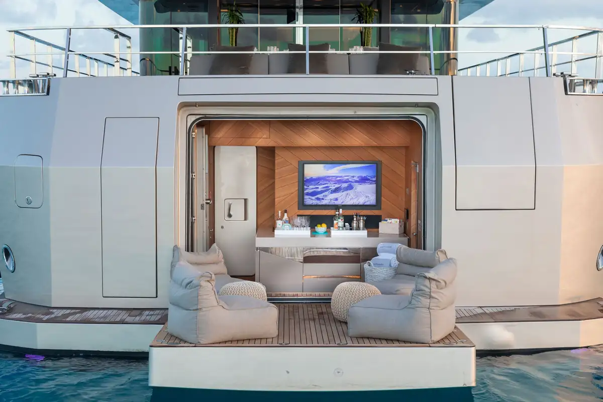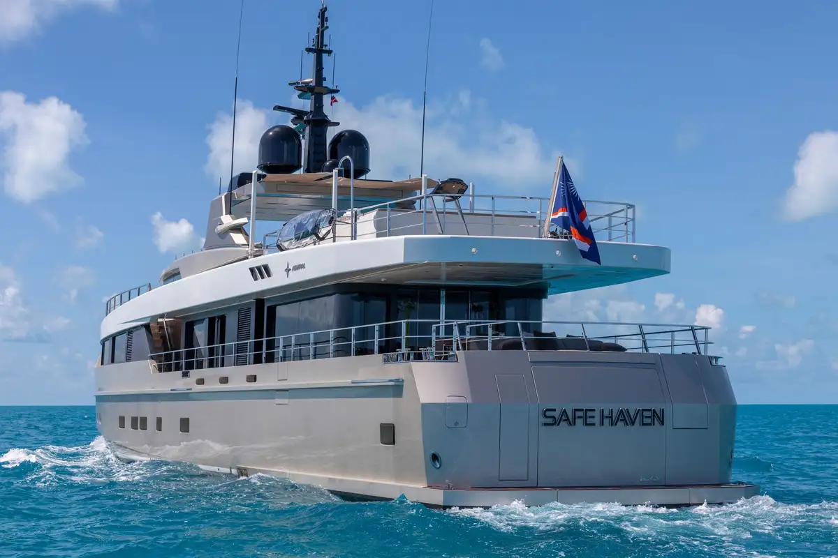 Join friends and loved ones on the spectacular SAFE HAVEN 37.5m (122ft), an exceptional yacht that offers you vast amounts of deck space for entertaining and to make the most of the sunshine and your location. With features like a sun deck jacuzzi, a foredeck open air cinema, a sea level beach club bar and a host of watersports equipment, your time on board SAFE HAVEN will be as memorable as it is enjoyable.
