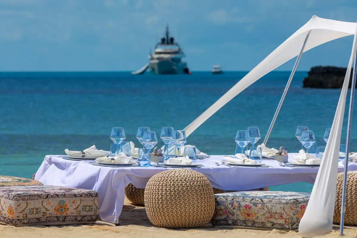 You can spend afternoons making the most of the on-water activities. Plunge from the sun deck inflatable slide to the crystal-clear waters below, grab a SeaBob, mask and snorkel for some underwater exploration. Perhaps you prefer the speed and thrills of jetskis or towable toys, wakeboards, and skis, or the more sedate option of paddling a SUP or kayak around the anchorage. Whatever your preference, SAFE HAVEN has something for everyone, regardless of age or ability. When all the on board activities have exhausted your guests, there’s a beach set for afternoons ashore at the water’s edge.