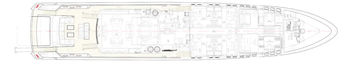 Turn heads with a charter on SAMURAI, which exudes a contemporary Asian cool that has universal appeal. Her impressive lifestyle amenities include a superb beach club, an alluring sun deck with jacuzzi, a gym and a flexible cabin arrangement. With fast speed credentials, she will take you effortlessly between anchorages and port towns to make the most of your time on board.