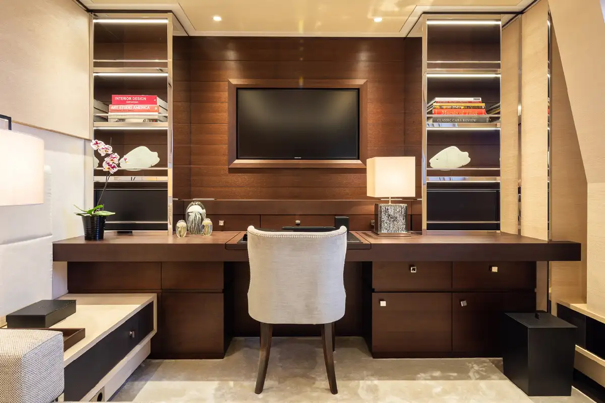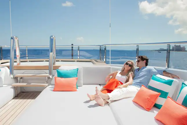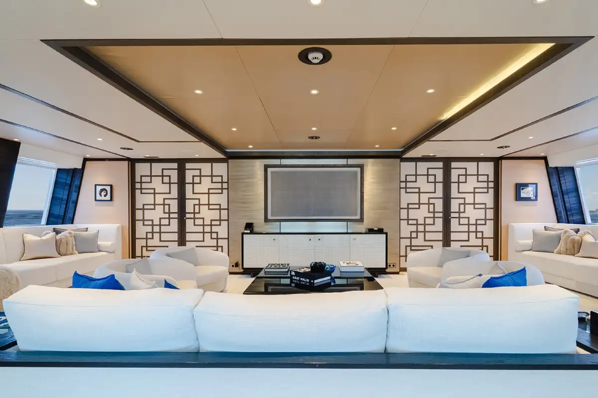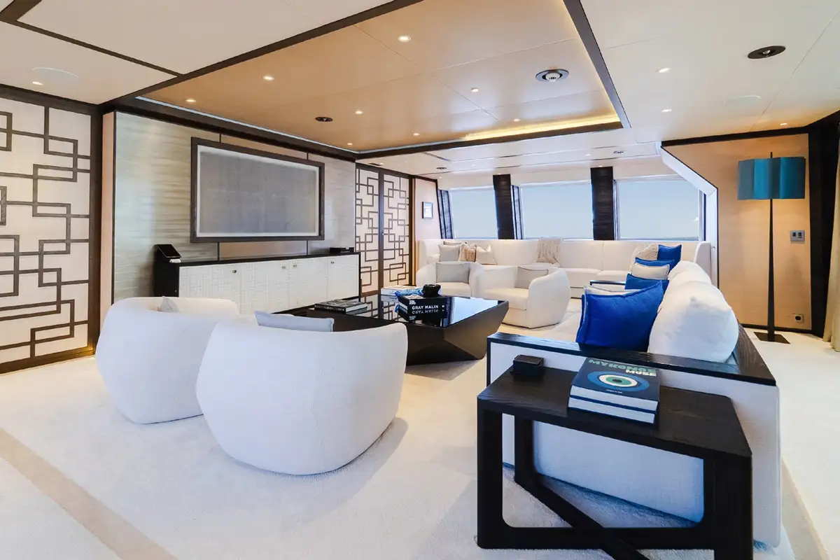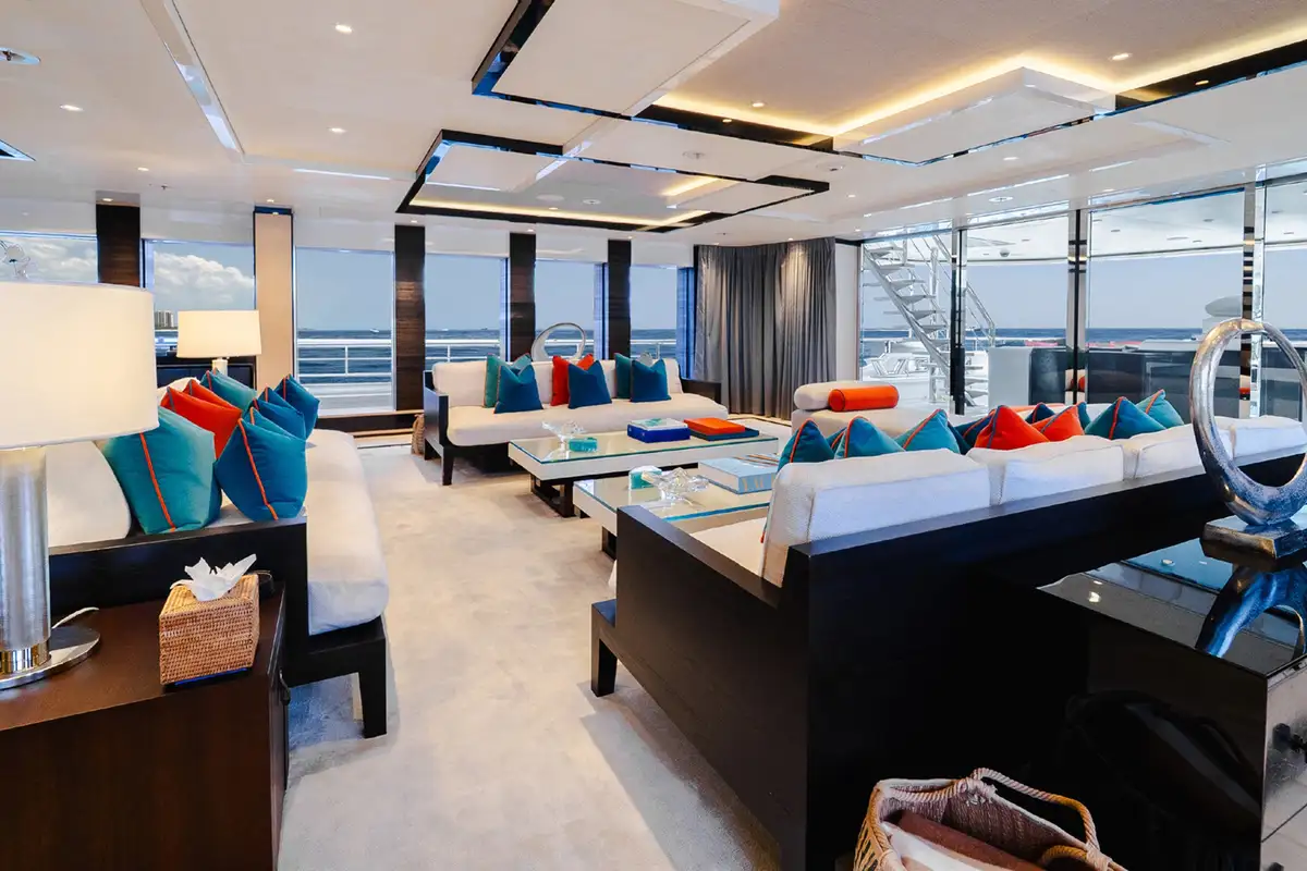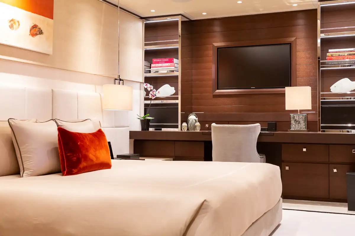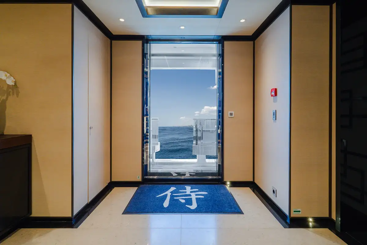 Back on board, while away a few hours on SAMURAI’s sun deck, with its large jacuzzi making the perfect spot for a chat with friends, then recline on the sun loungers or enjoy the shade of the seating area with a refreshing cocktail. For some downtime indoors, head to the sumptuously decorated sky lounge to read a book or watch a movie.
