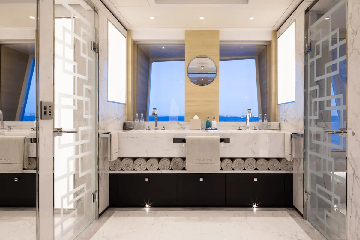 SAMURAI has an impressive selection of watertoys; pick up the pace on the jetskis, towable inflatables and SeaBobs or take in the scenery from the kayaks and paddleboards. If you prefer your mornings a little quieter, the fold-down beach club balcony offers a private sanctuary, or escape to the foredeck to take in your spectacular surroundings in the shade of the awning.