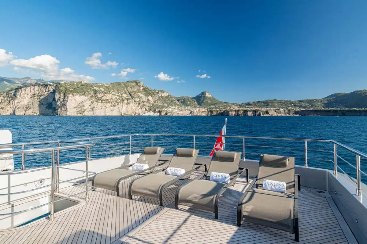 Explore the highlights of the Mediterranean in a true icon of modern Italian style. SANDS is a high-performance yacht with six cabins for up to 12 guests, two spacious decks of accommodation, a huge expanse of open-air space for relaxation, and a separate pilothouse to enhance your privacy on board.