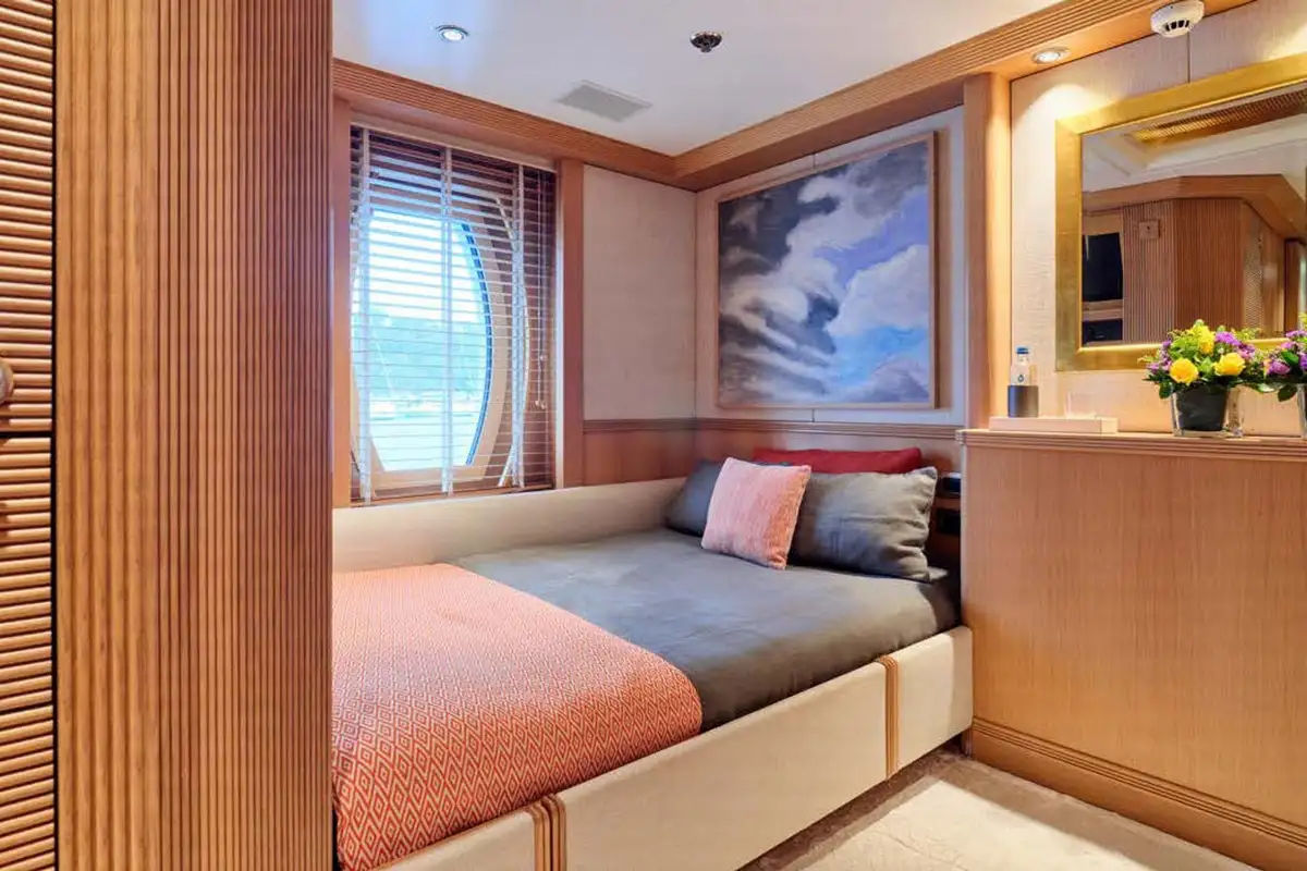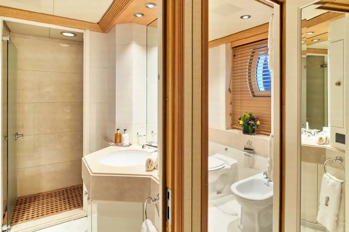 SEAHORSE offers accommodation for up to 12 guests in 6 cabins. She has a full beam master, one cabin with a semi-double bed and an extra pullman bunk and two VIP doible cabins on the lower deck that convert into a suit similar to the master through adjoining sliding door, all with en suite facilities. There are also two twin cabins with en suite facilities on the lower deck.
