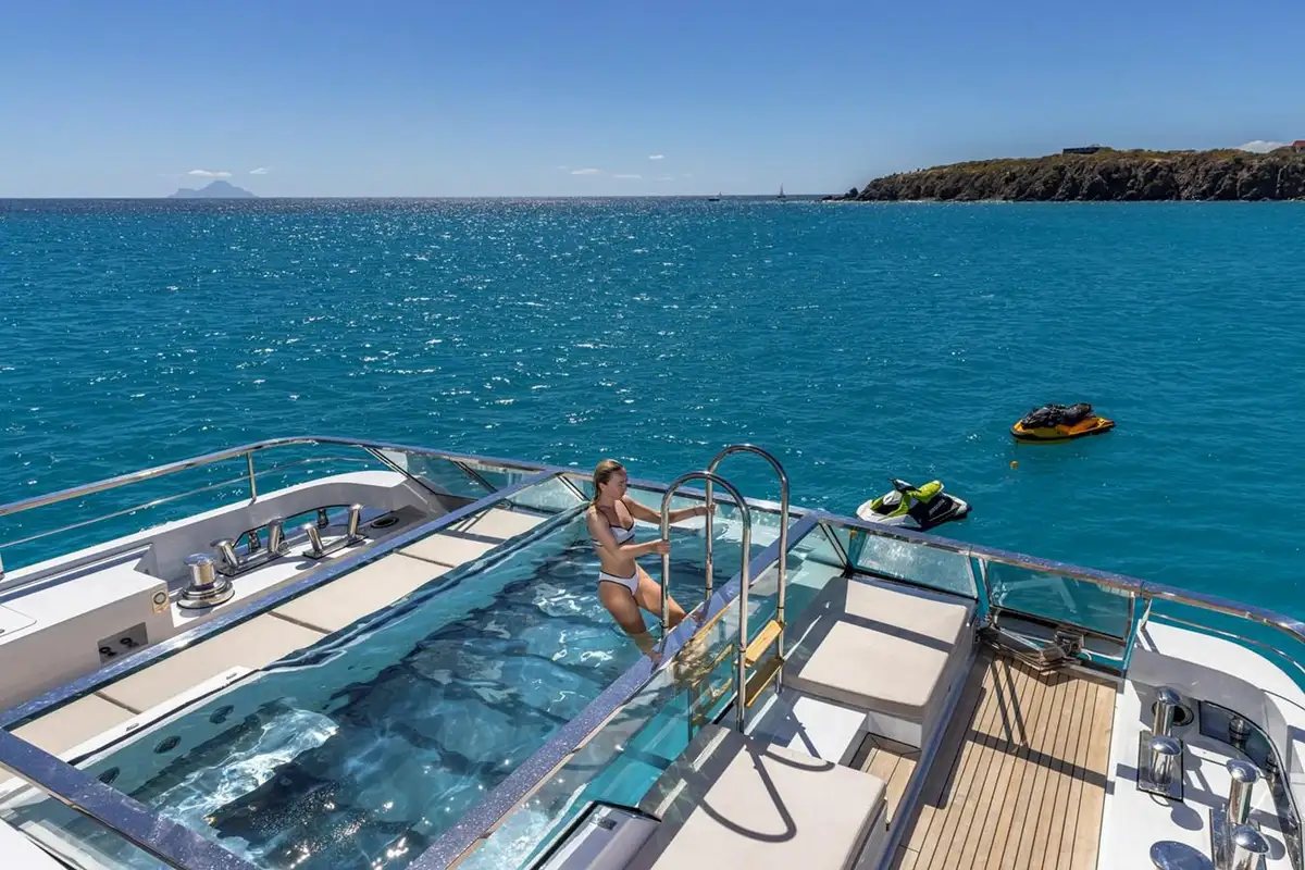 - Glass bottom pool with counterflow current, designer lighting and jacuzzi function