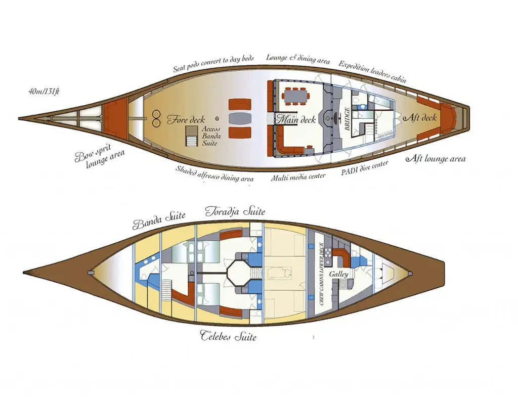 SI DATU BUA features exterior design by Kasten Marine Design. Up to six guests can be accommodated on board the superyacht. She has a wood hull and a wood superstructure. She is powered by one Yanmar engine, which gives her a top speed of 10kn.