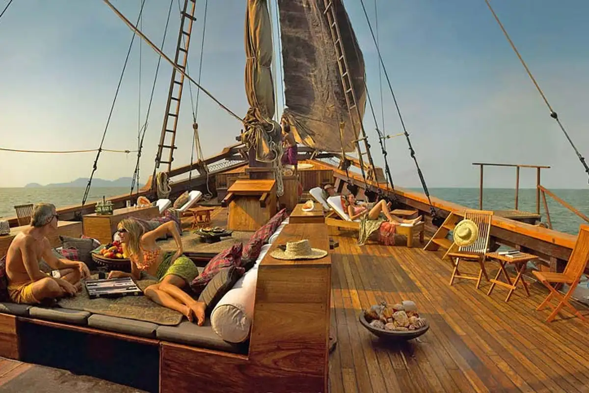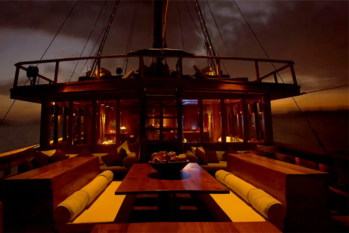 SILOLONA, truly a modern classic sailing yacht, 49.7m ( 164ft) was built to the demandingly high standards of German Lloyds register of shipping. No expense has been spared to ensure that discerning travelers, accustomed to understated elegance and exquisite cuisine, discover an agreeable mode of transportation from which to admire the majestic scenery, underwater wonders and fascinating artistic expression found along the fabled spice routes of South East Asia.