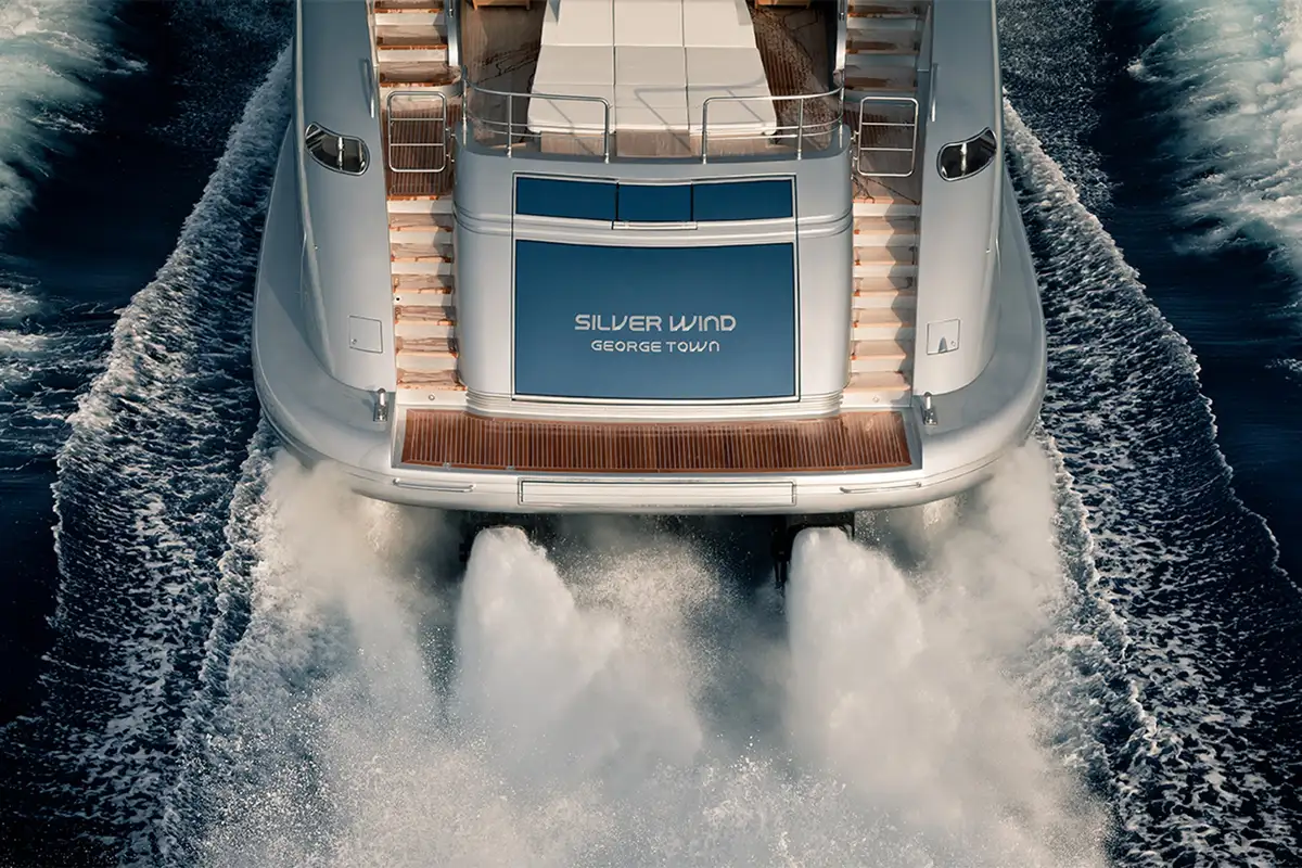 With her sleek and sporty metallic exterior, SILVER WIND is instantly recognisable. The Italian styled exterior and interior along with a top speed of 26 knots make her a first choice for glamourous coastal cruising and island hopping. Perfect for those wishing to experience a different port or anchorage every night and enjoy the efficiency of speed!