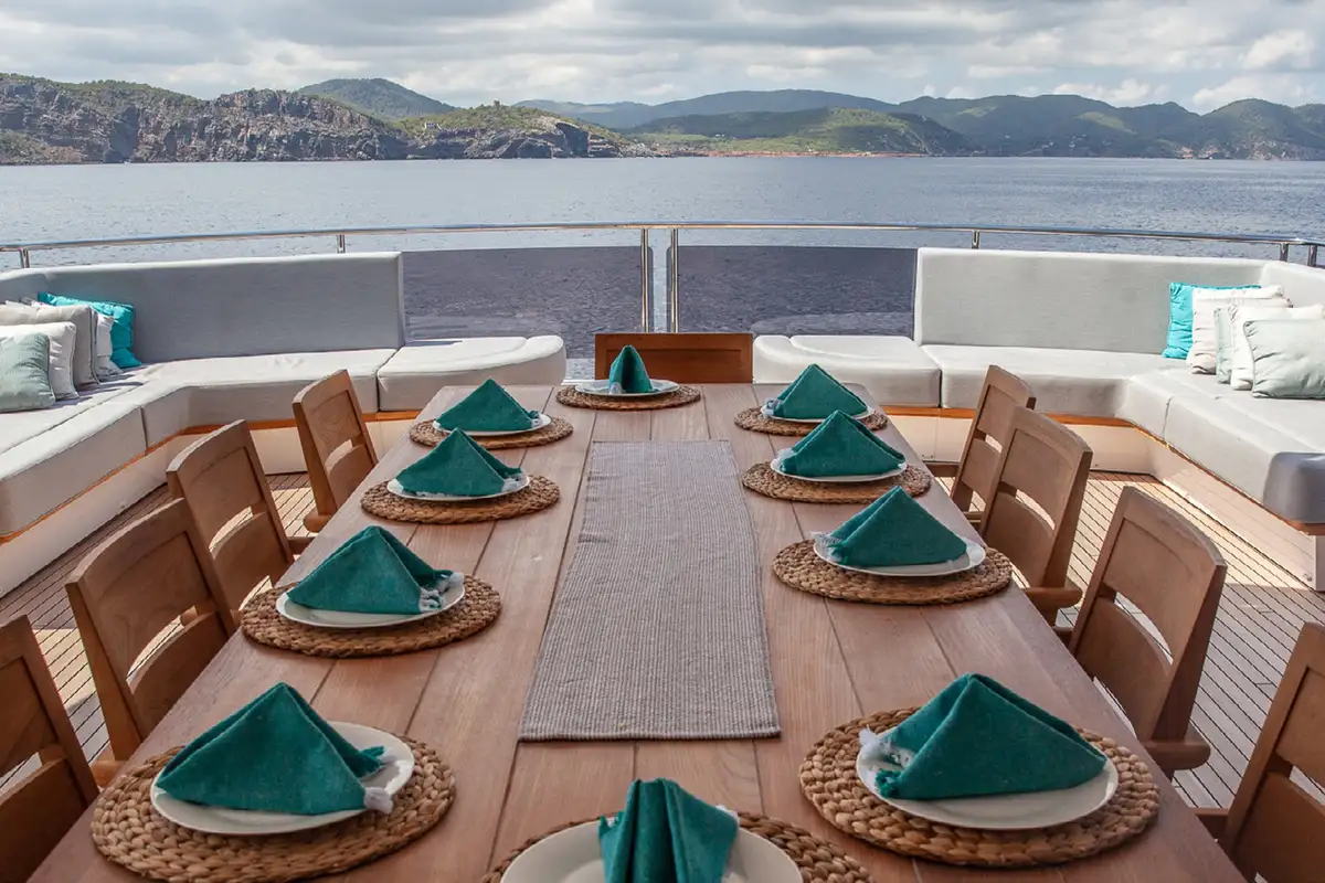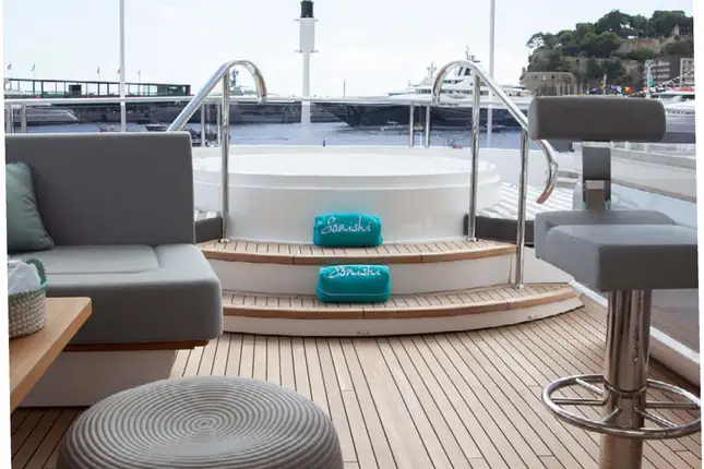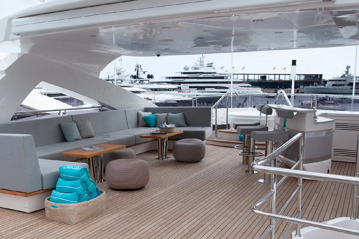 Escape to the well-appointed sun deck to enjoy a relaxing afternoon soaking up the sun on the deck chairs or around the raised jacuzzi. The central seating area and bar are perfect to socialise and sip a few cocktails with a view. If you need a refreshing dip, head town to the bathing platform where the crew can set up a great selection of watertoys as well.
