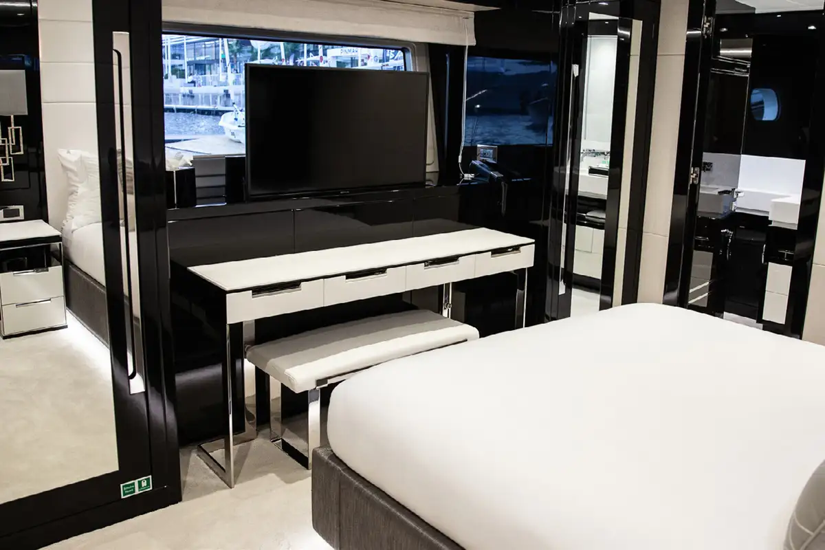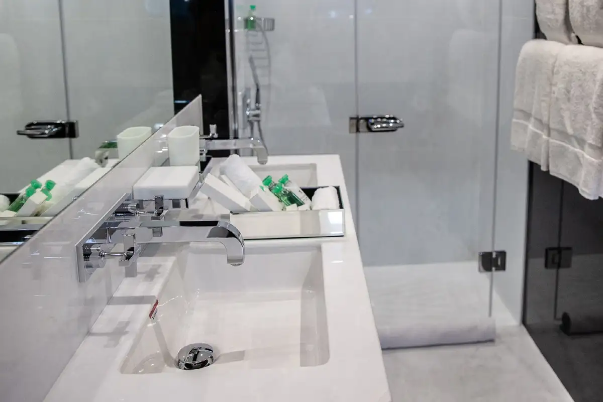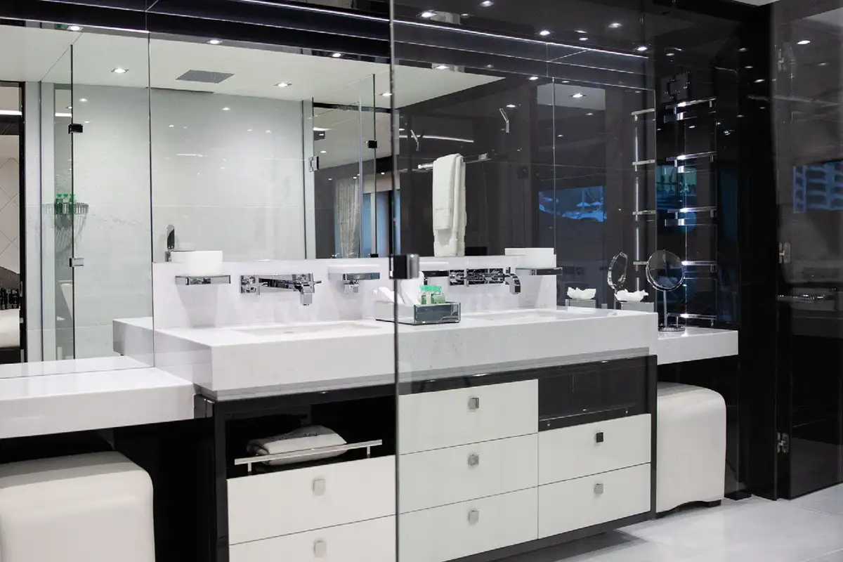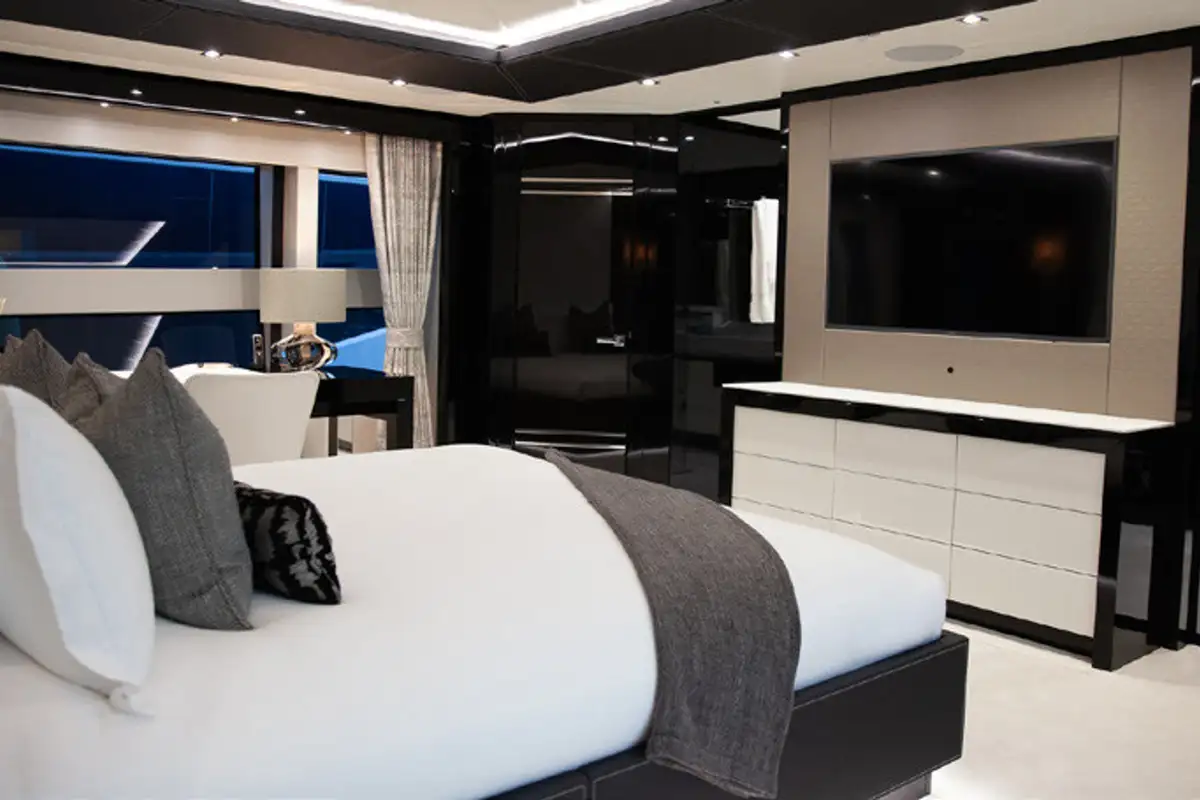 The guest cabins are spacious and luxuriously appointed. These include a full beam master suite on the main deck and four more guest cabins on the lower deck comprising of two double cabins and two twins that can convert into doubles. With her ideal charter layout, fully customised interior and all the latest AV systems throughout, SONISHI is sure to please.
