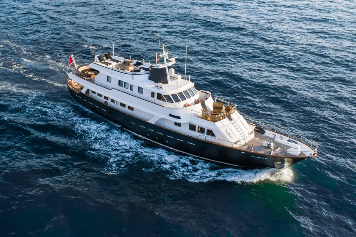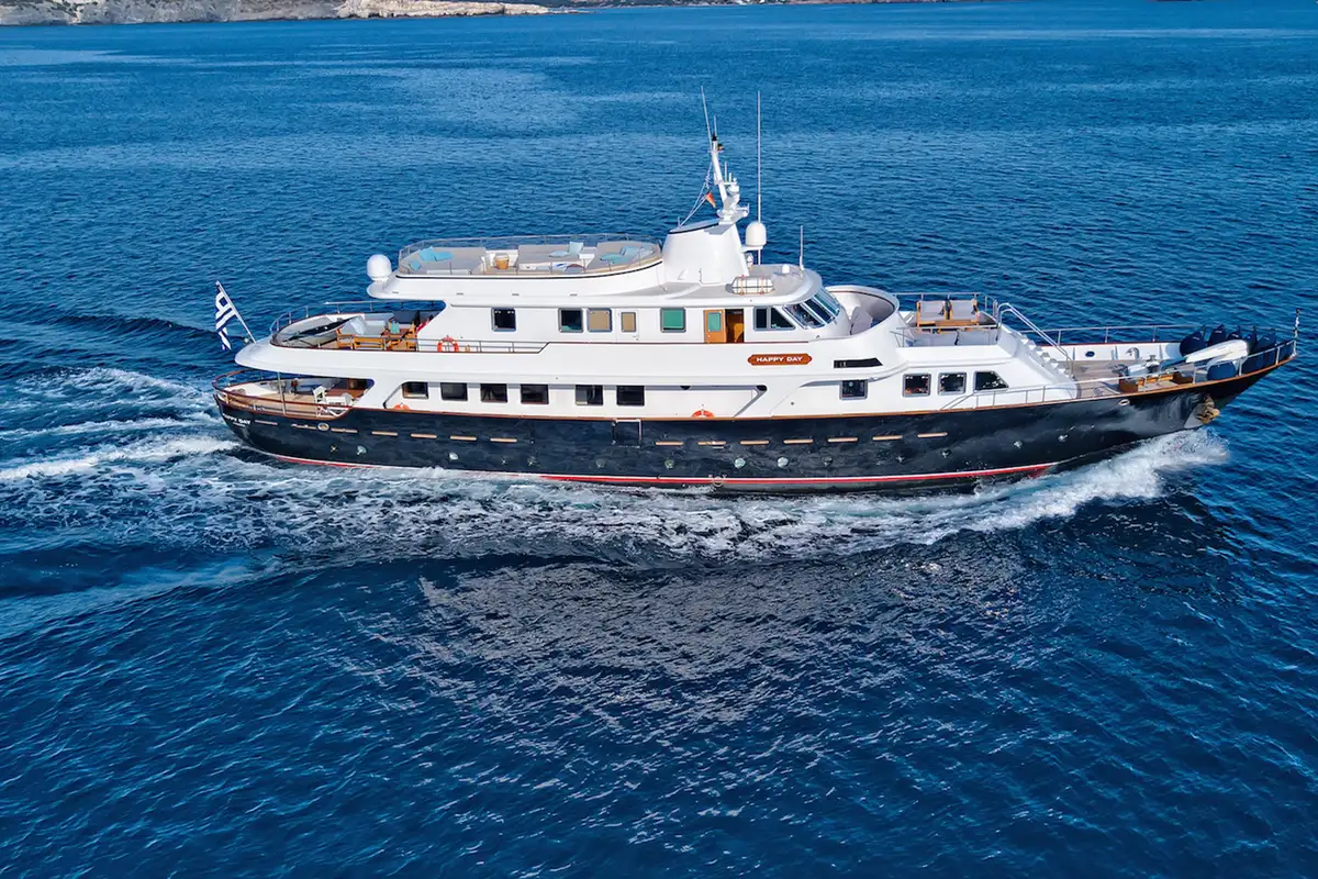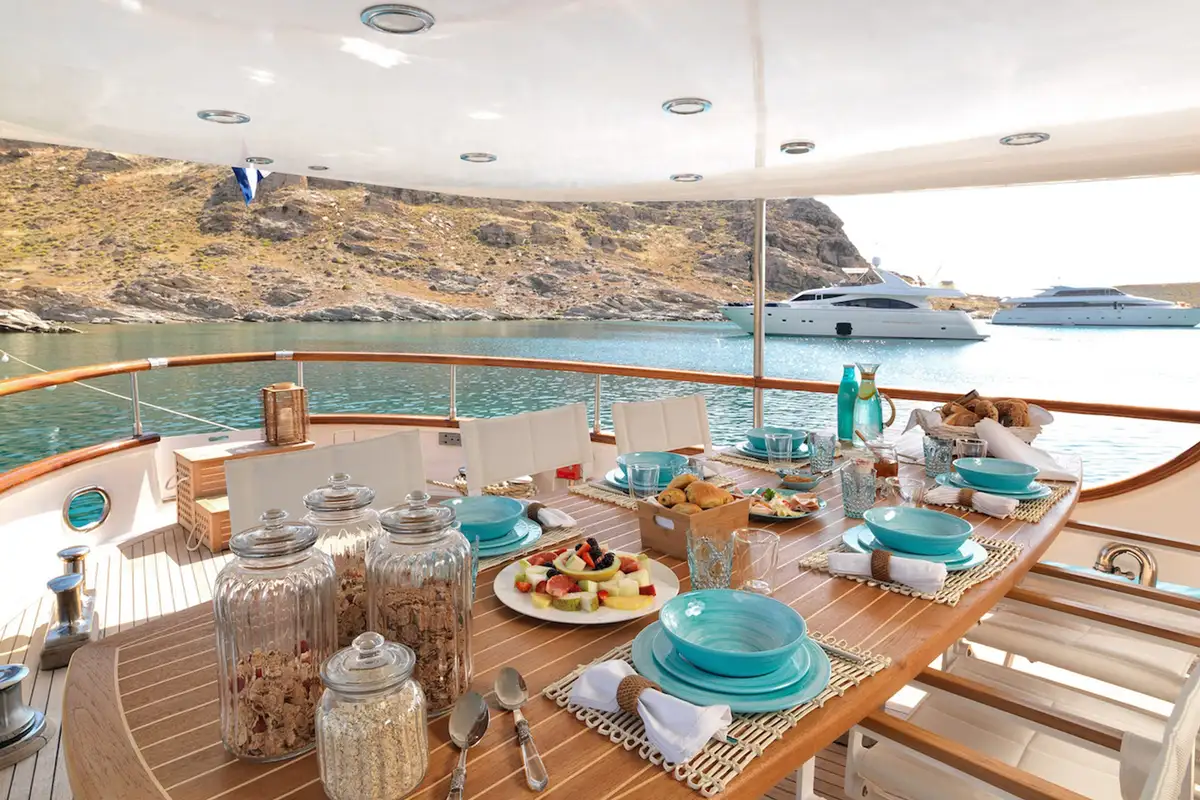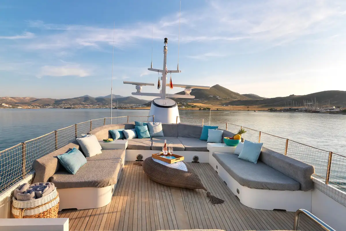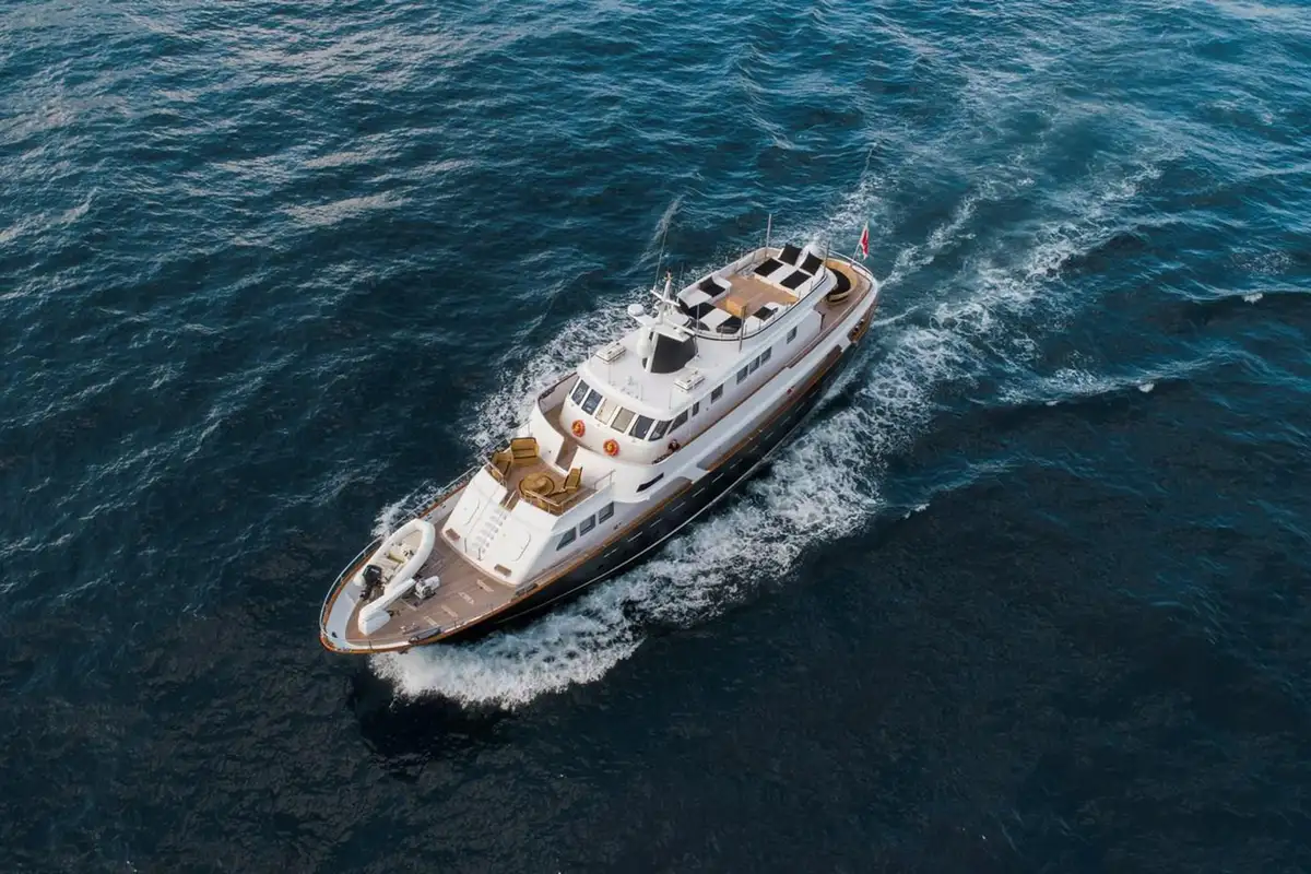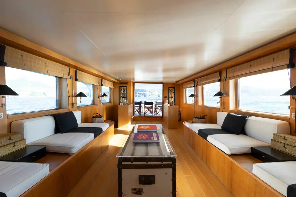 With a cruising speed of 11.5 knots and modern stabilisers underway, she delivers a smooth and comfortable ride. Her low fuel consumption sets her apart from many yachts of her class, offering both efficiency and elegance in equal measure. SOUNION II is a superb charter option for families and groups seeking a unique blend of heritage, sophistication, and laid-back enjoyment on the water.
