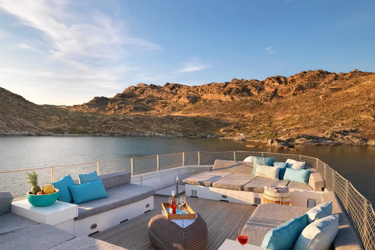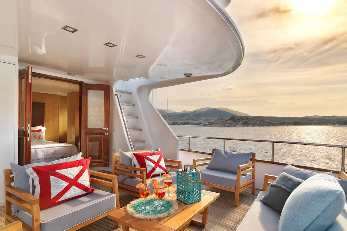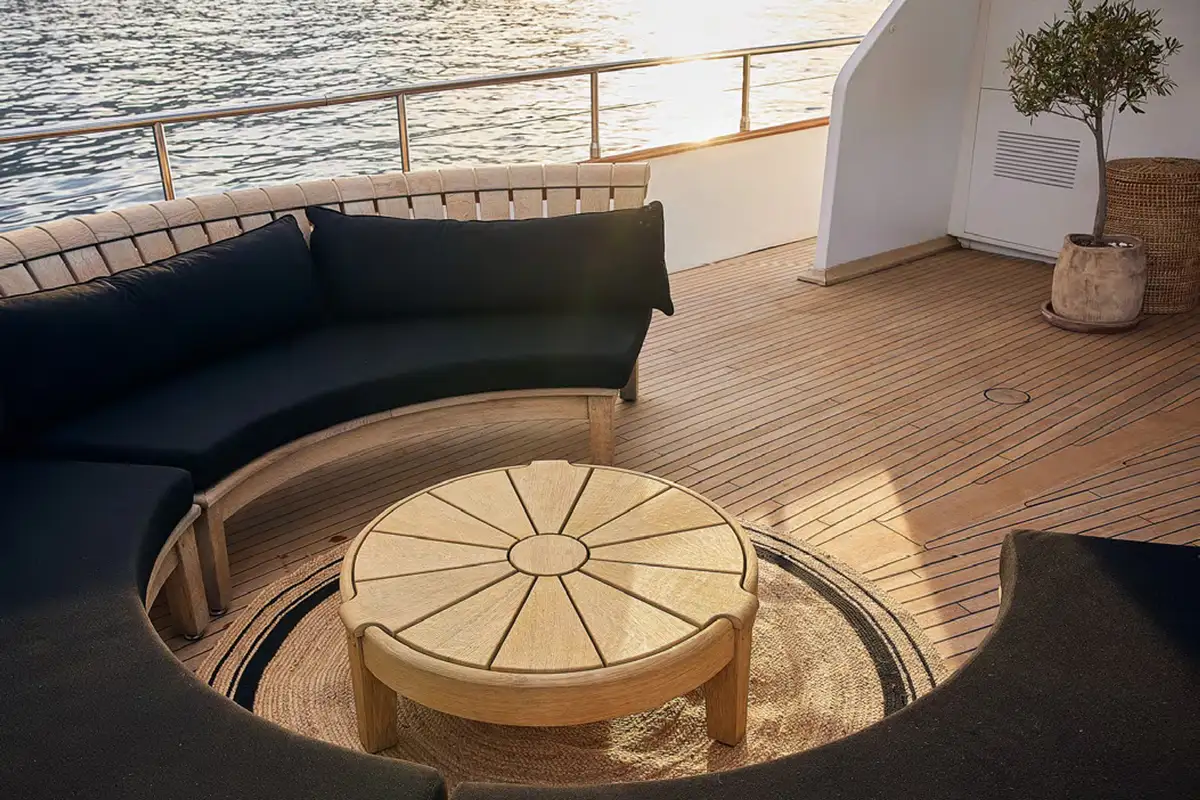 SOUNION II’s sun deck offers panoramic views and abundant space for relaxation or socialising, while her al fresco dining area evokes the feel of a stylish beach club. Whether guests are soaking up the sun, enjoying a quiet evening under the stars, or entertaining in the main salon, the onboard experience is designed to be both luxurious and effortlessly sociable.