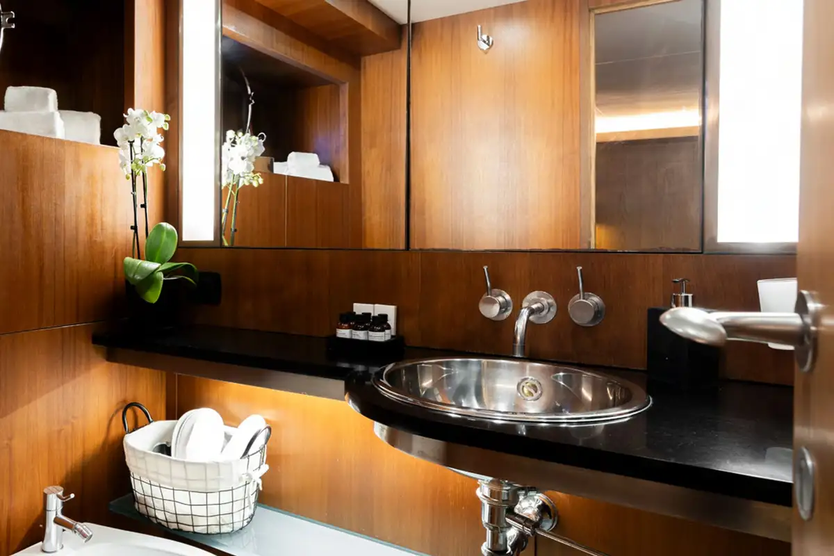 For those with an active streak, SOUNION II boasts a well-equipped selection of water toys, including two SeaBobs, stand up paddleboards, water skis, a wakeboard, and snorkelling gear. There is also gym equipment on board, along with Wi-Fi connectivity and air conditioning to ensure guest comfort throughout the charter.