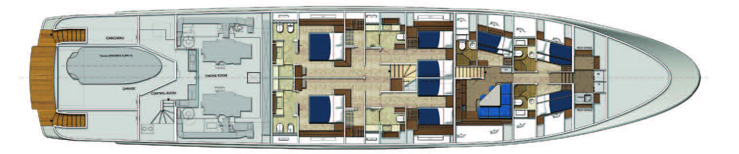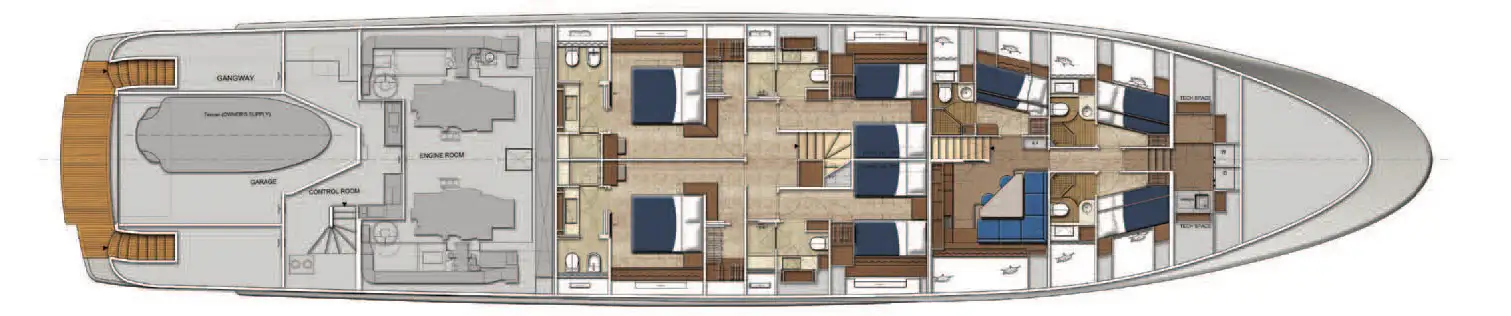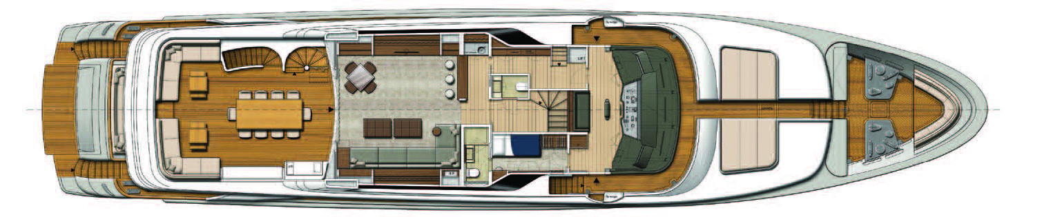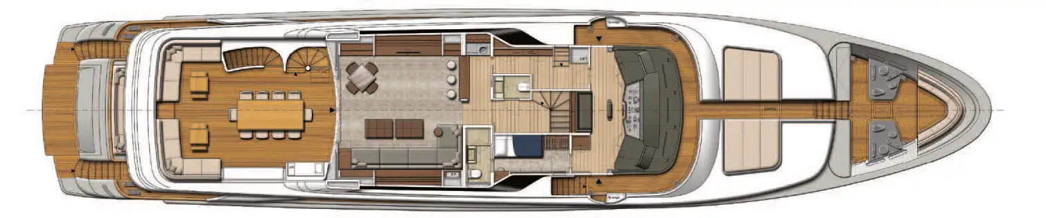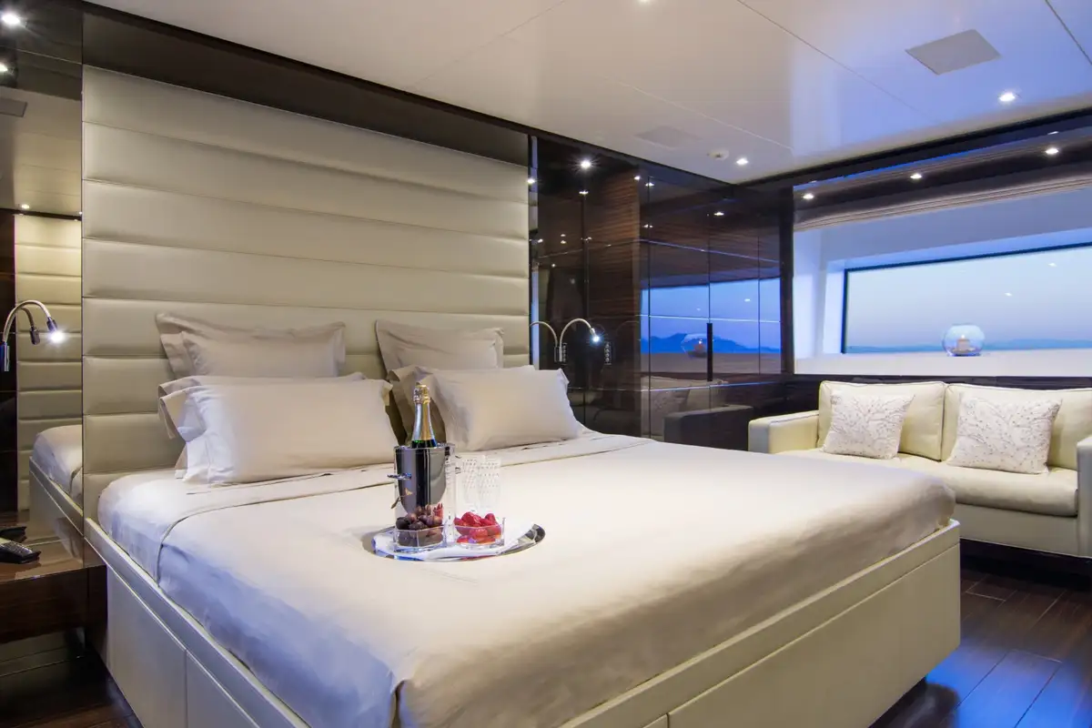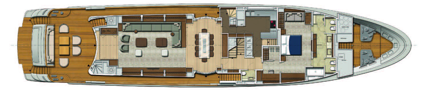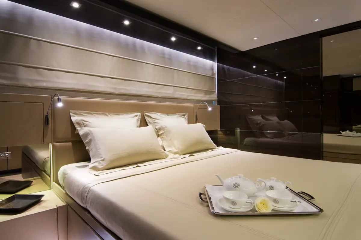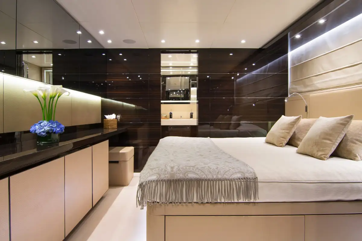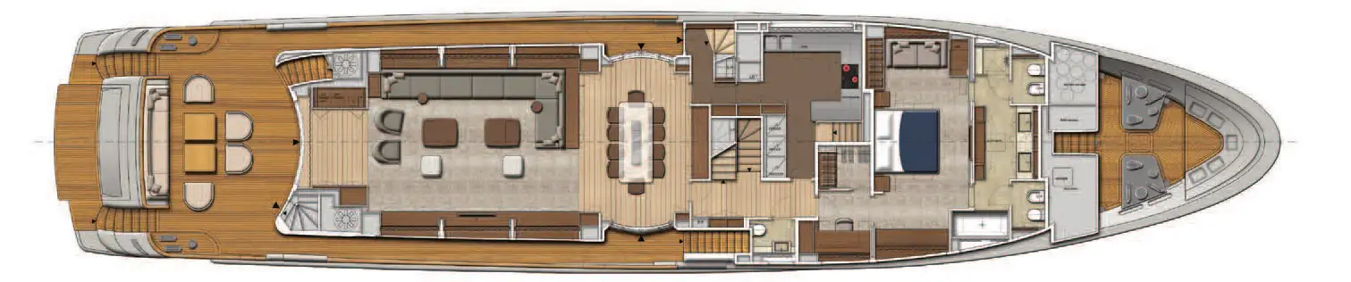 - Full-beam main deck master cabin with his and hers bathroom and office