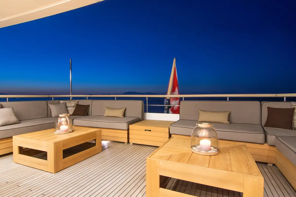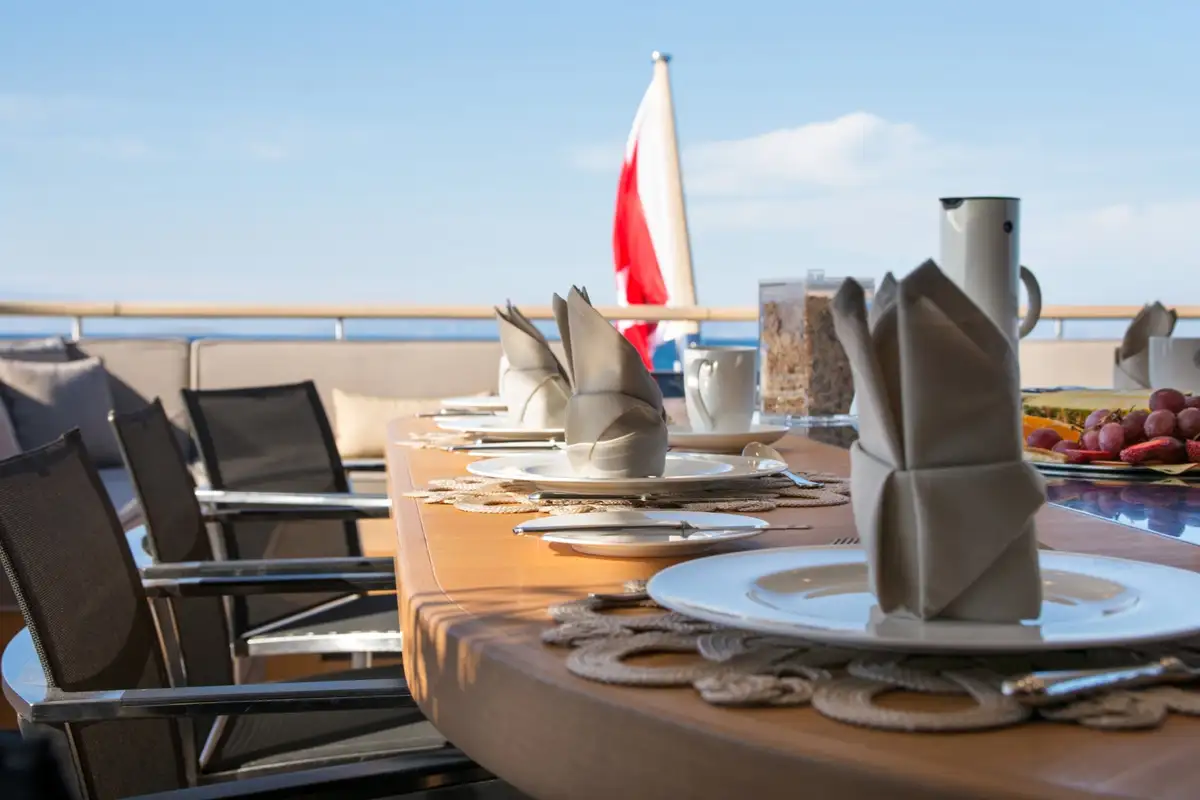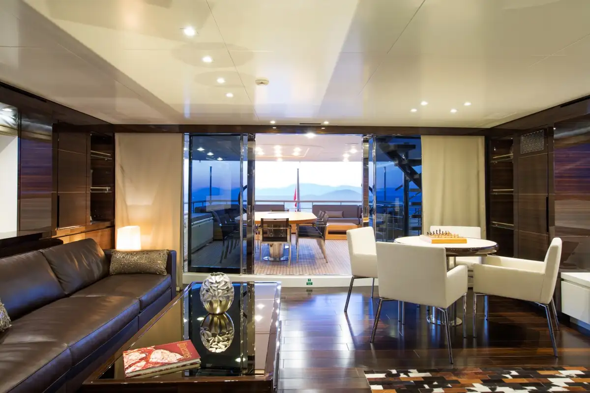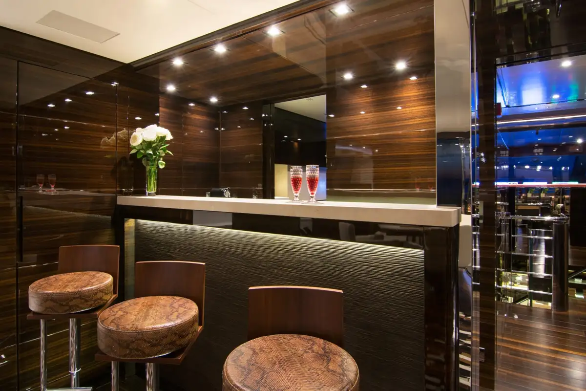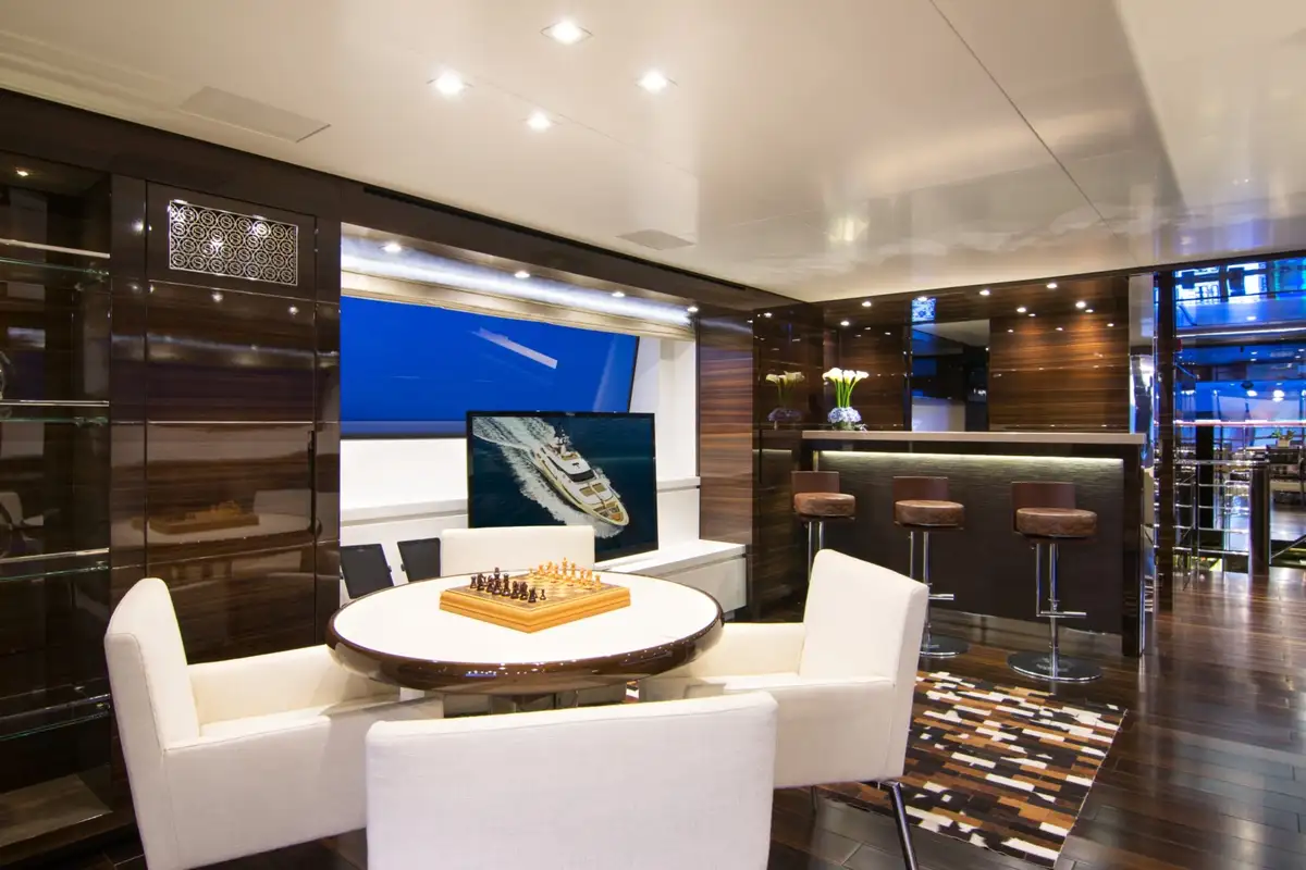 Those in search of the sun can head to the foredeck and SOURAYA’s two vast forward sunpads. There are more sunpads on the sundeck, where there’s also a jacuzzi, bar area and al fresco dining area. A large al fresco dining area is on the upper aft deck, and to the rear, you’ll find a broad social seating space. After a wonderful evening dining in the fresh air, it’s just a few steps forward to the sky lounge. Here, you and your guest can relax at the bar, unwind on the sofa or challenge each other to board games at the games table.