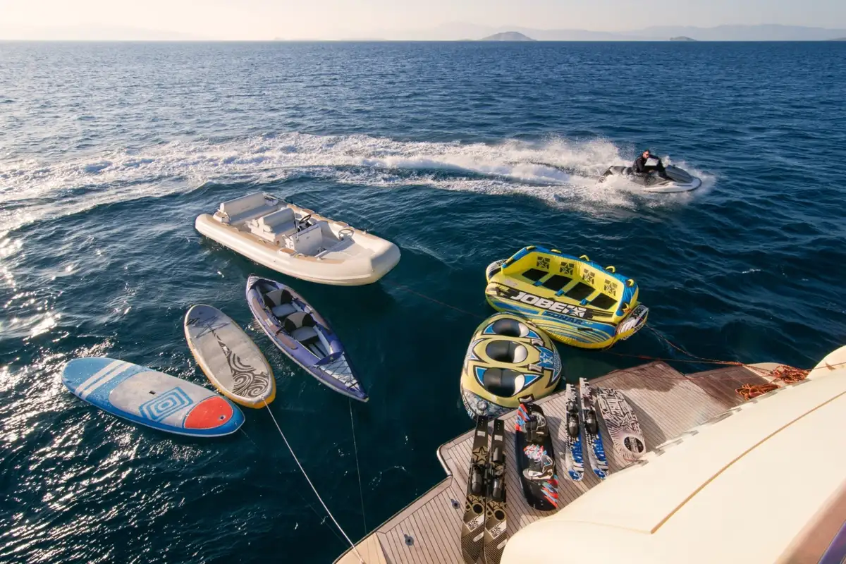 A yacht charter isn’t complete without a fine collection of toys, and SOURAYA has the lot. You’ll also find a jetski, a SeaBob, an electric jetboard, a pedalboard, two paddleboards, a canoe, skis, snorkelling gear and a selection of towable inflatables for all ages to enjoy.