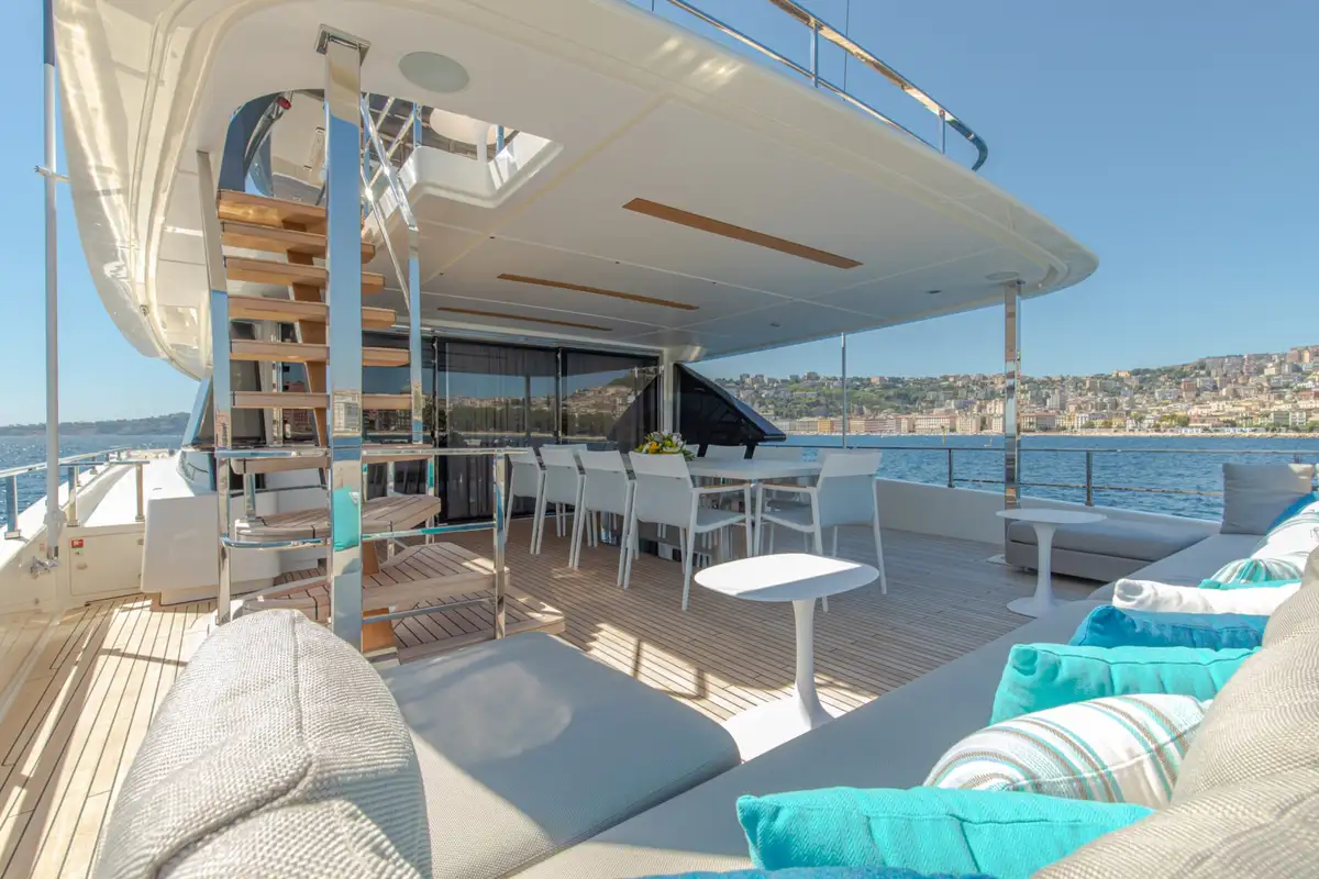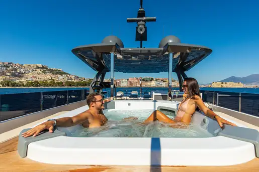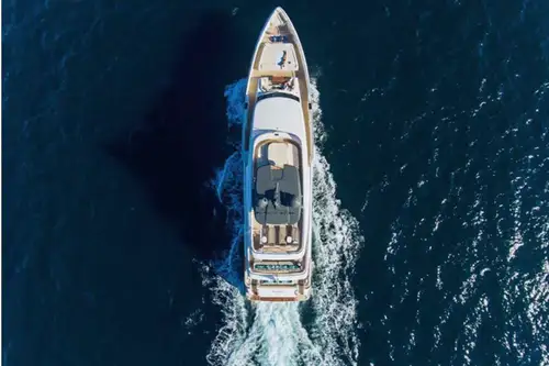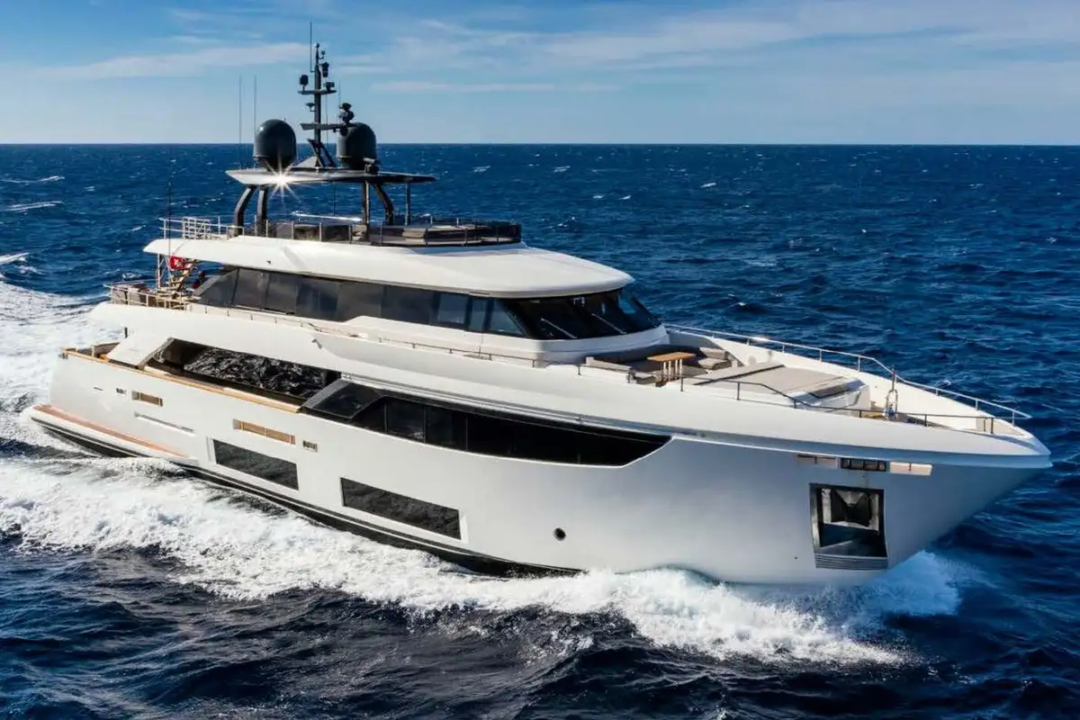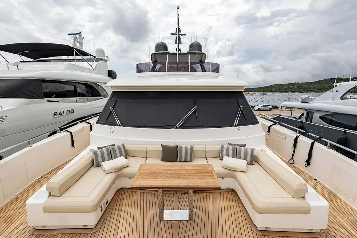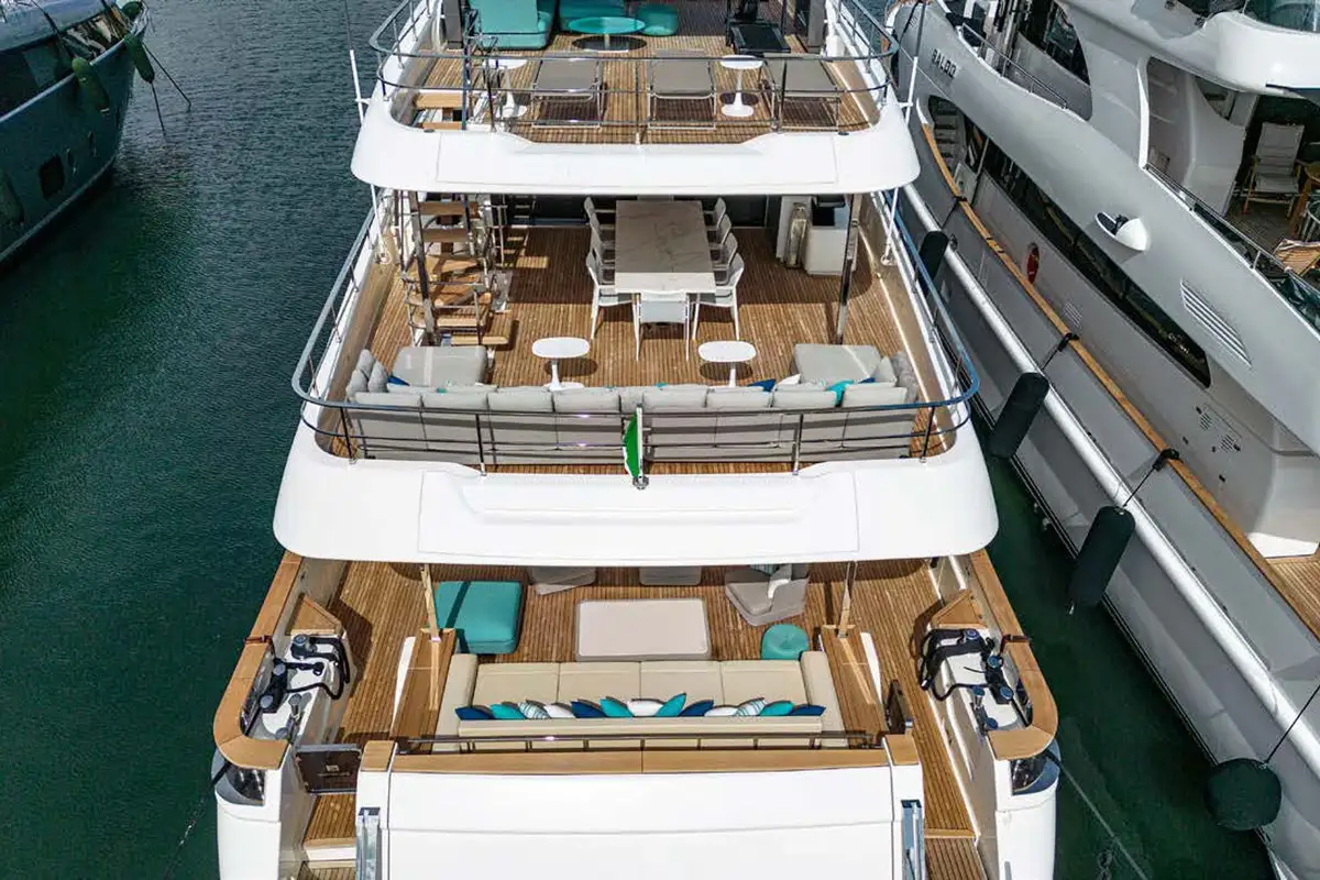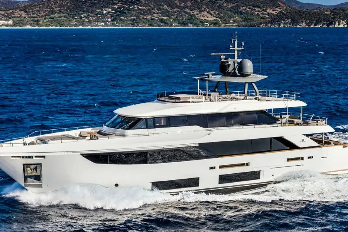 Custom Line Navetta 33 SOUTH is the semi-displacement yacht that turns true sophistication into absolute luxury. Her bow assures best-in-class stability and seaworthiness.