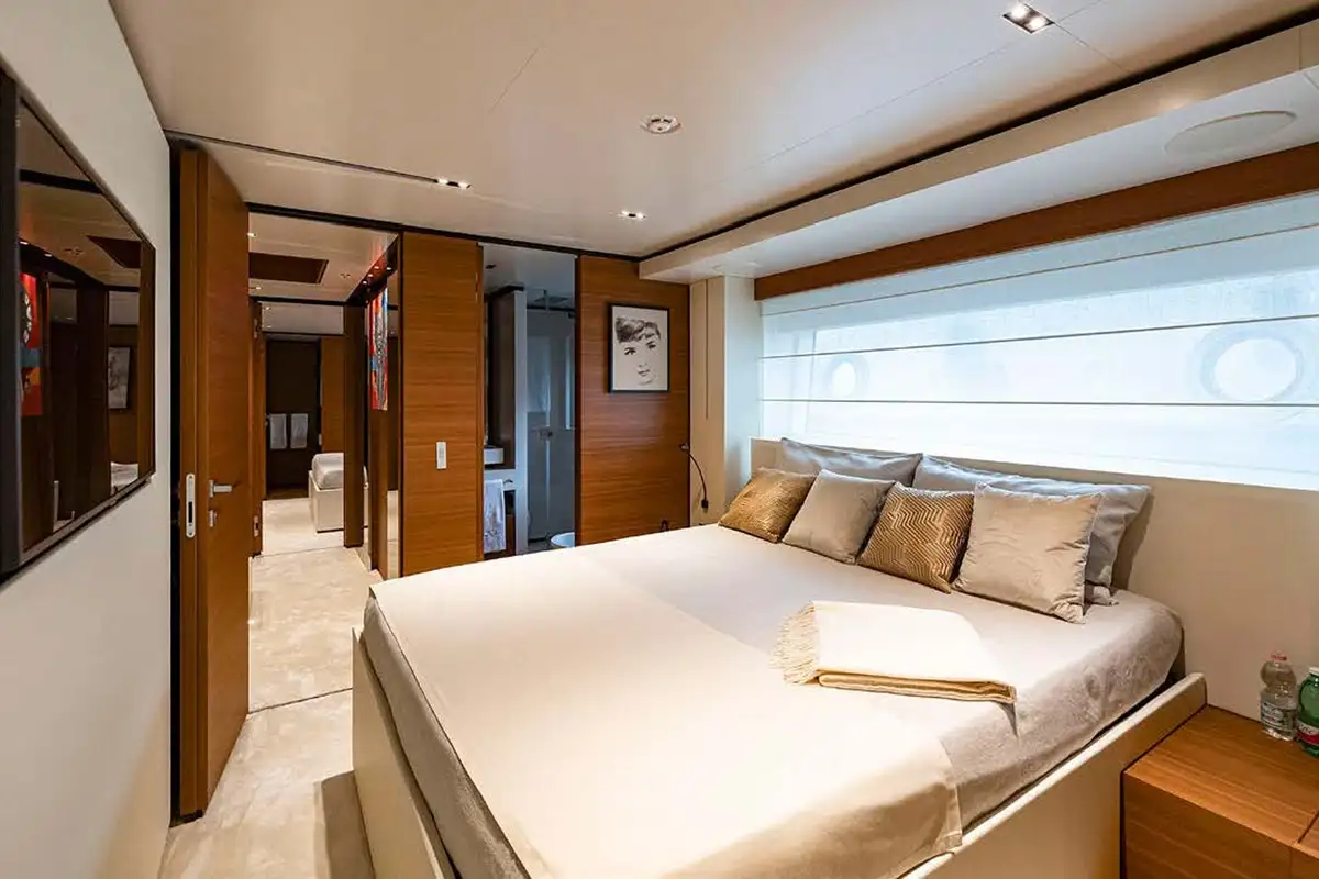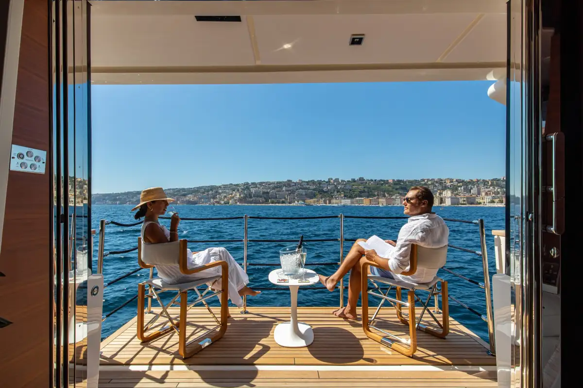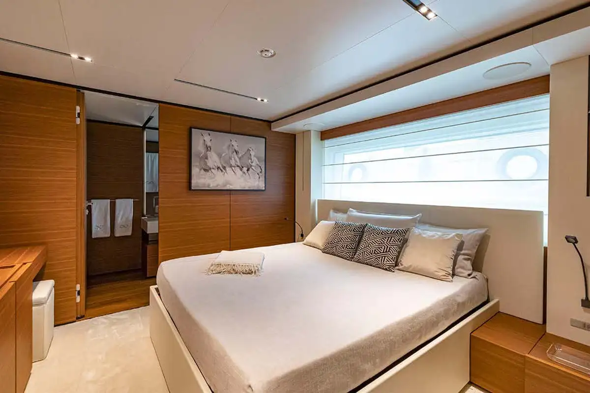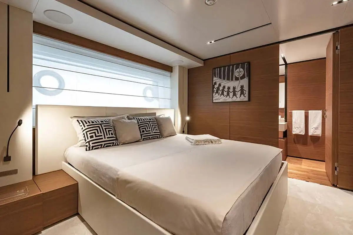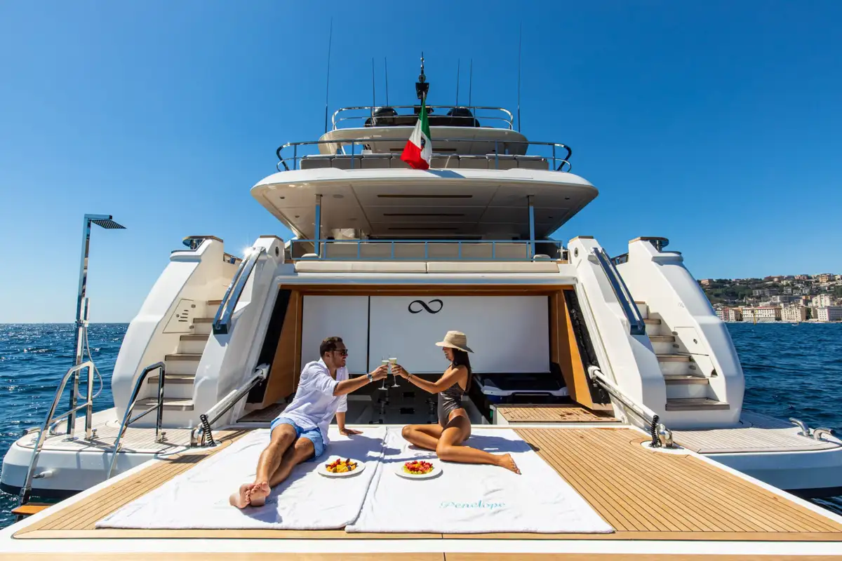 Custom Line Navetta 33 SOUTH is the semi-displacement yacht that turns true sophistication into absolute luxury. Her bow assures best-in-class stability and seaworthiness.