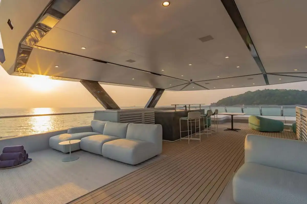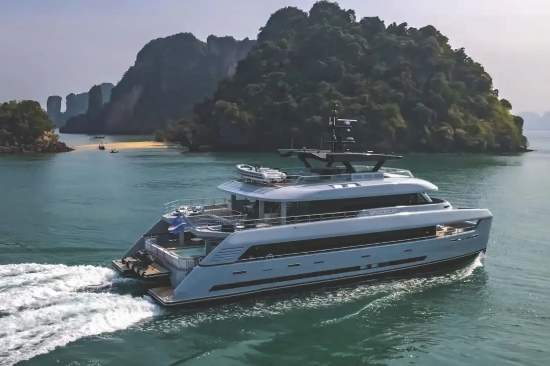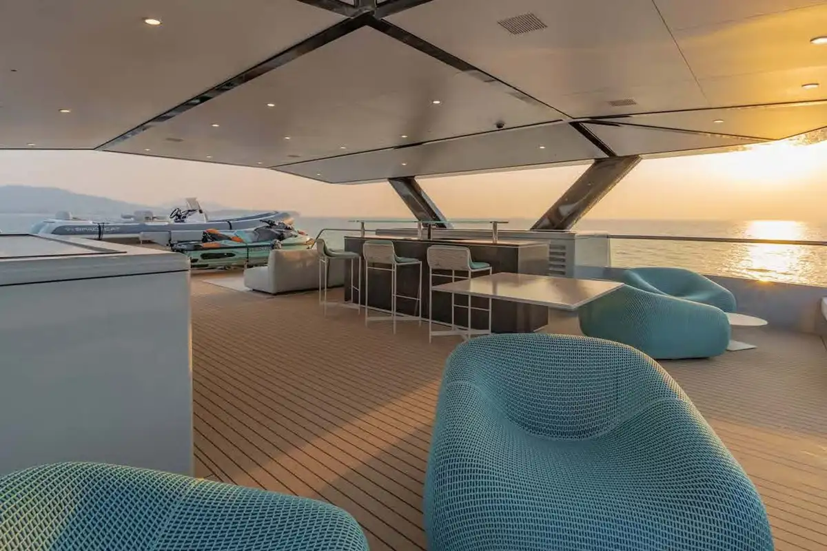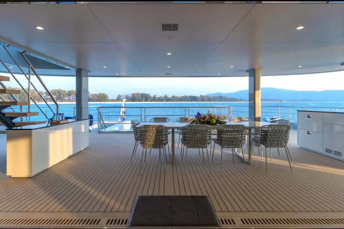 Whether you’re relaxing on the bow terrace or enjoying a gourmet meal in the al fresco dining area, SPACECAT promises to be an extraordinary experience. Charterers will love the zen-like atmosphere of the yacht, which harmonizes with the luxury and adventure of a seven-star Burgess charter experience.