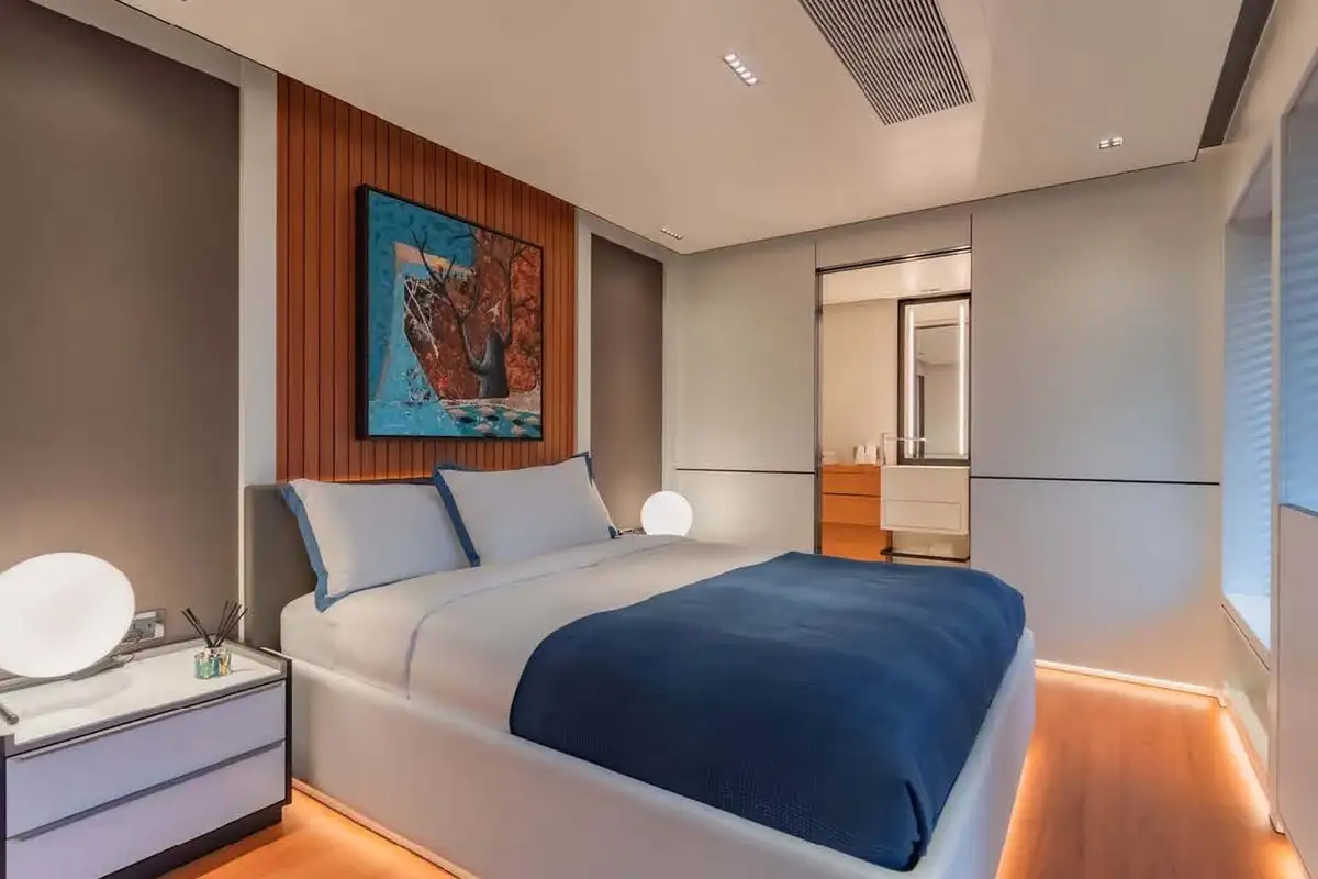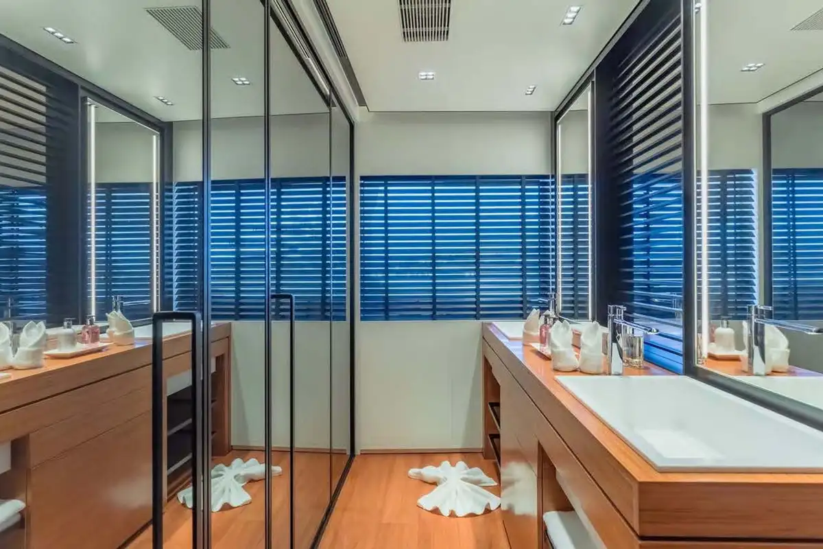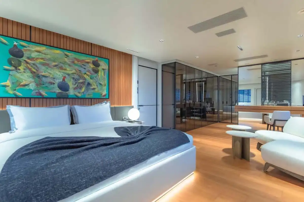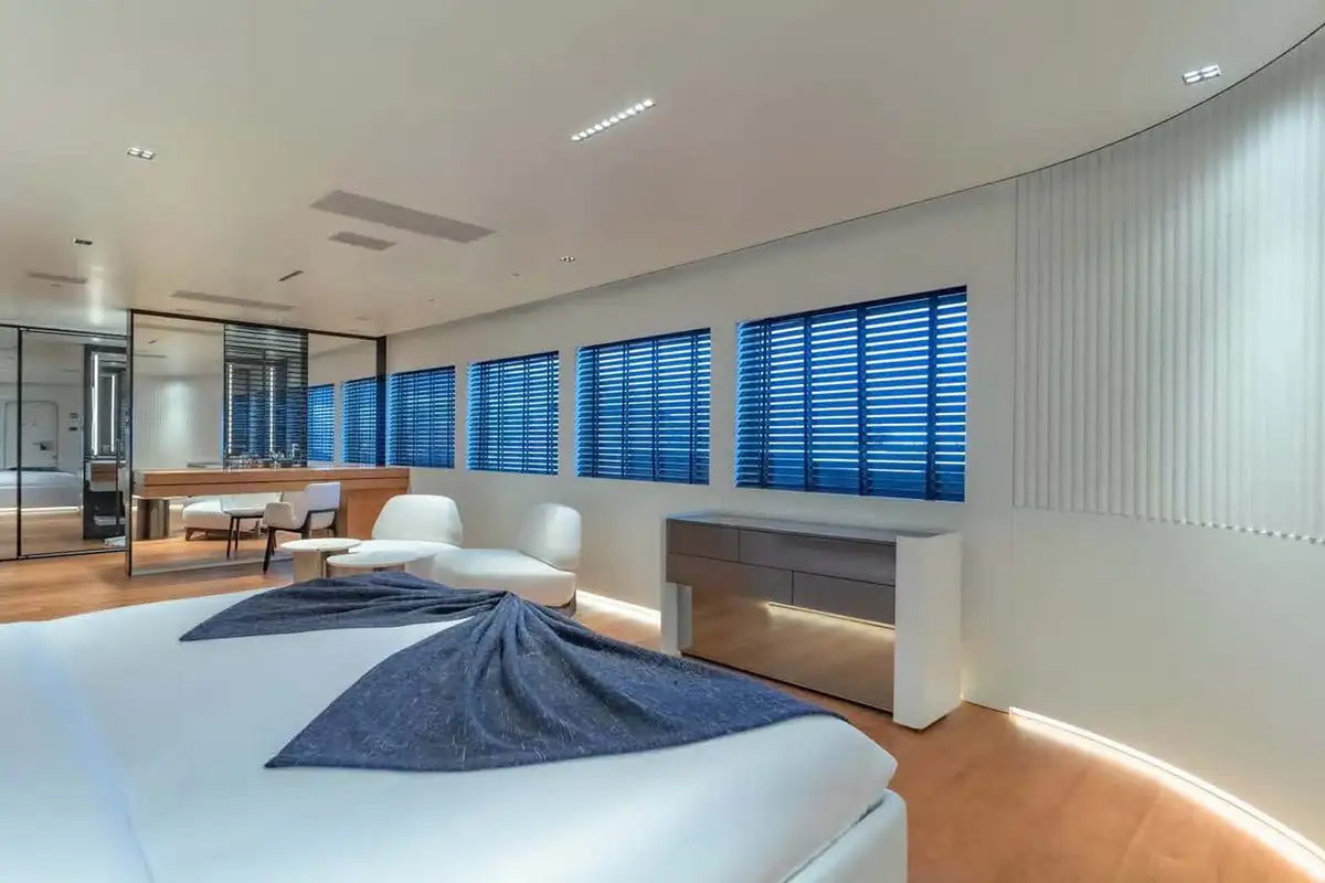 Keep your guest list exclusive, SPACECAT takes up to eight guests in four generous suites. For the principal charterer, there is a lavish full-beam master suite that provides ultimate privacy and the deep comfort of a king-sized bed.