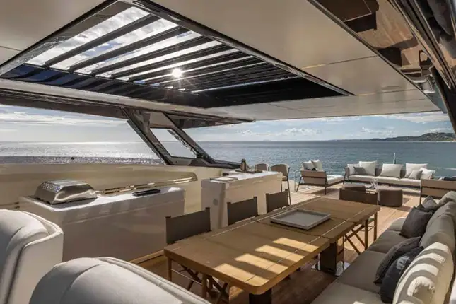 Take advantage of the innovative features found on the Ferretti 1000 for your next charter. Launched in 2023, SPICA offers you and your guests the latest design trends and the maximum space on deck and throughout her spacious interior.