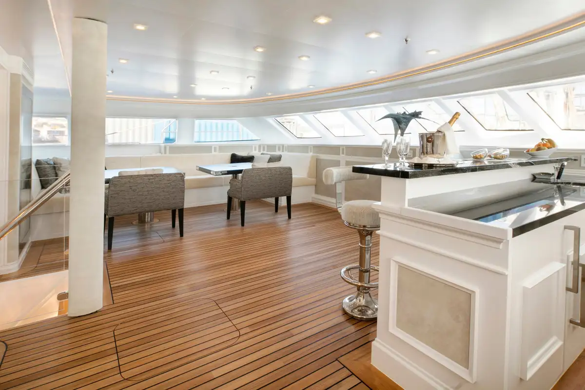 Start your day with an energising yoga flow on the sun deck before heading down to breakfast at the shaded tables on the main deck aft cockpit. After, watersports are hosted off the retractable swim platform. Choose from SeaBob sea scooters, jetskis, wakeboards, waterskis and towable inflatables for high-speed action on the water, or paddleboards and snorkelling for something more sedate. The crew can provide sailing lessons on the dinghies, while fishing gear offers the opportunity to catch your own dinner. If you fancy heading ashore for a shopping trip, the stylish 12m Van Dutch tender is on hand, with plenty of space for your purchases.