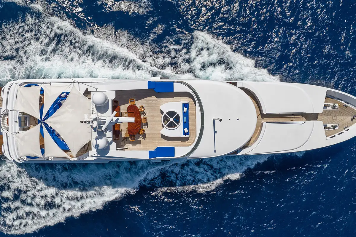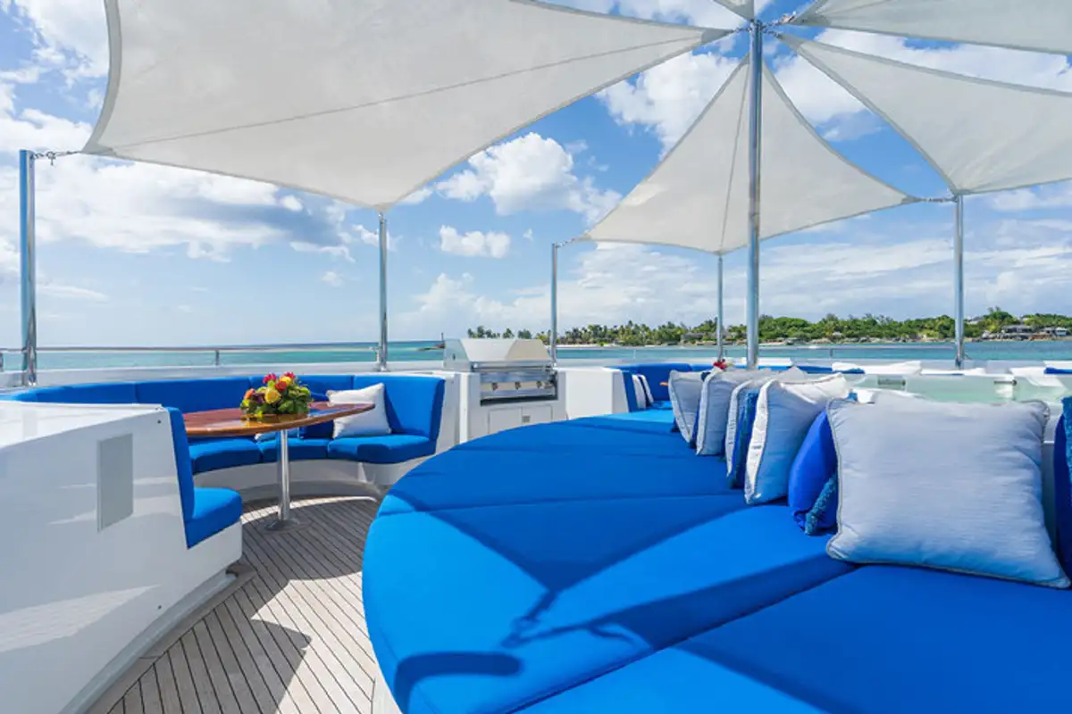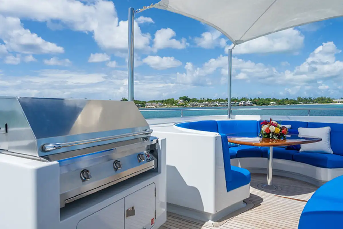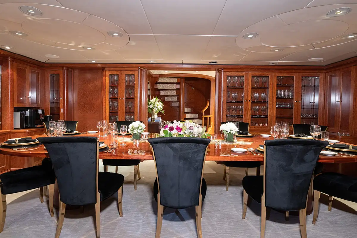 STAR DIAMOND comes alive with water toys and tenders that make every day an adventure. From four WaveRunners to a waterslide and an Intrepid towed tender, she’s ready to make a splash at every anchorage. The large swim platform and inflatable dock allow easy access to the sea and the full selection of toys on board. When it’s time for a meal with a view, head to the upper deck, where a shaded alfresco dining area for 12 awaits. This climate-controlled space offers a blend of comfort and elegance, ideal for relaxed breakfasts or late-night gatherings. With her top-tier crew and blend of American craftsmanship, STAR DIAMOND is where luxury meets laid-back living.