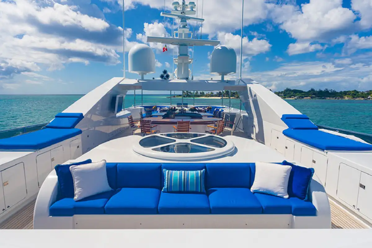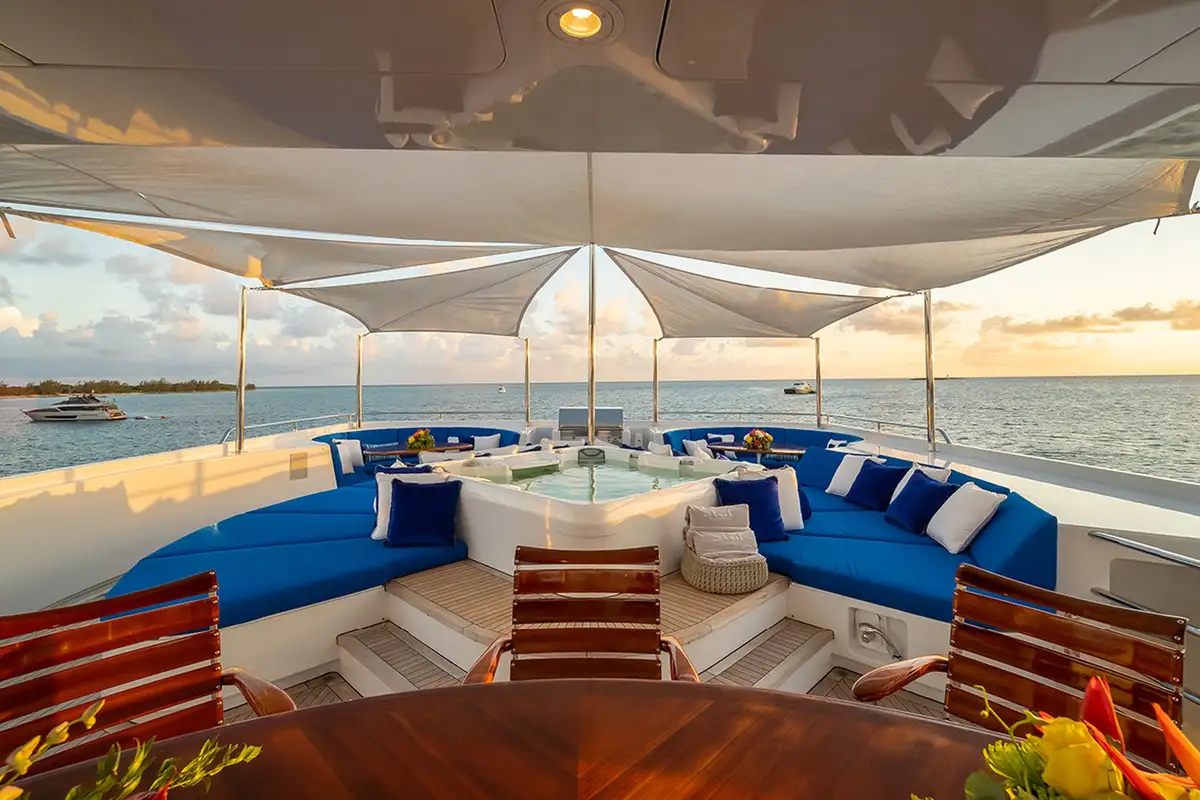 Every deck is designed for extraordinary experiences on the water. She is made to impress, particularly after her 2024 refit that places her at the top of her game. Known for delivering a versatile and luxurious charter experience, STAR DIAMOND is packed with spaces for sun, fun and relaxation—all showcased on what is often called the best sundeck in her class. Imagine two U-shaped bars with seating for 12 guests, a large Jacuzzi and a series of plush lounges, all set to give guests 360-degree views.