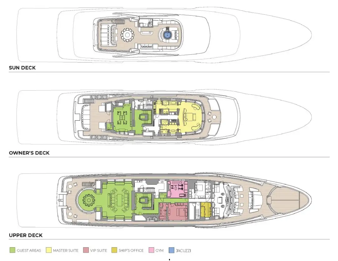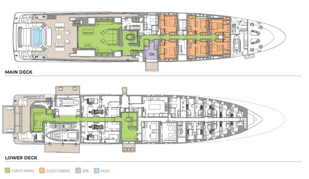 STARBURST IV prioritizes wellness with a fully equipped upper deck gym and a main deck beauty salon and massage suite, complete with a fold-down balcony for indulgent sea-side treatments. Designed for inclusivity, she offers wheelchair-friendly accessibility, with an elevator servicing lower to owner’s decks and step-free access throughout, ensuring a memorable experience for all guests.