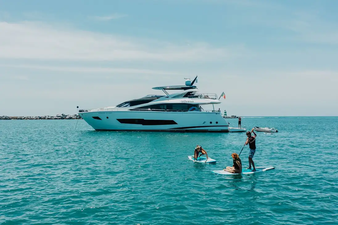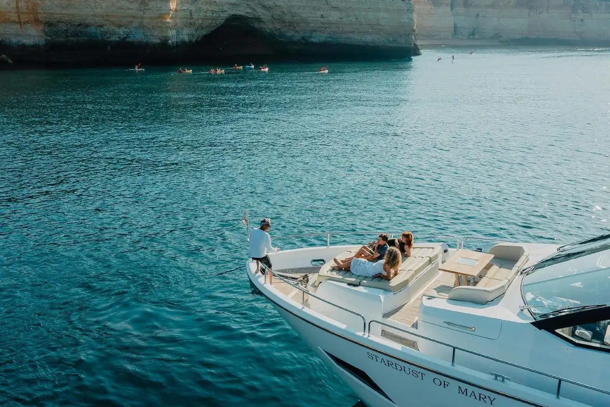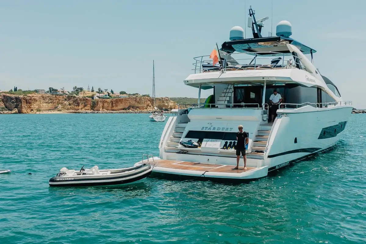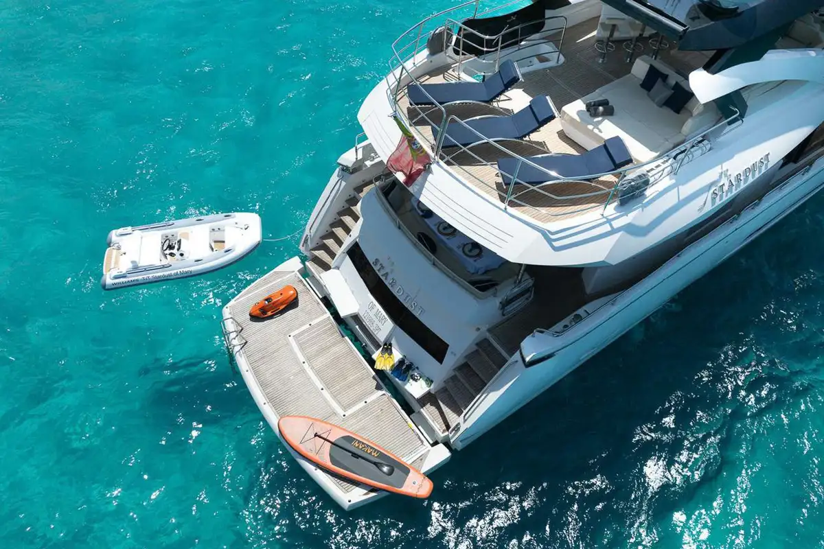 Conversation centres around the morning’s activities. Some of your guests took the electric surfboard like a duck to water, others more like a stone to water; the bigger the splash, the more fun it was! The children loved being towed at speed on various inflatables while you and your partner managed to get some quiet time together on the SUPs. After lunch, the captain promises a stunning snorkelling spot to enjoy. At 28 knots, STARDUST OF MARY will make short work of the miles, allowing you to travel further in less time so you can make the most of every destination.