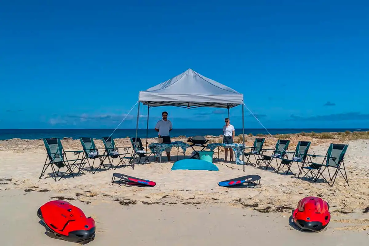 Discover adventure around Compass Cay by snorkelling the Rocky Dundas Caves, where natural skylights illuminate cathedral-like chambers filled with vibrant marine life. Swim through hidden grottos, free dive into turquoise pockets, and explore coral formations that make this one of the most exciting underwater spots in the Exumas.
