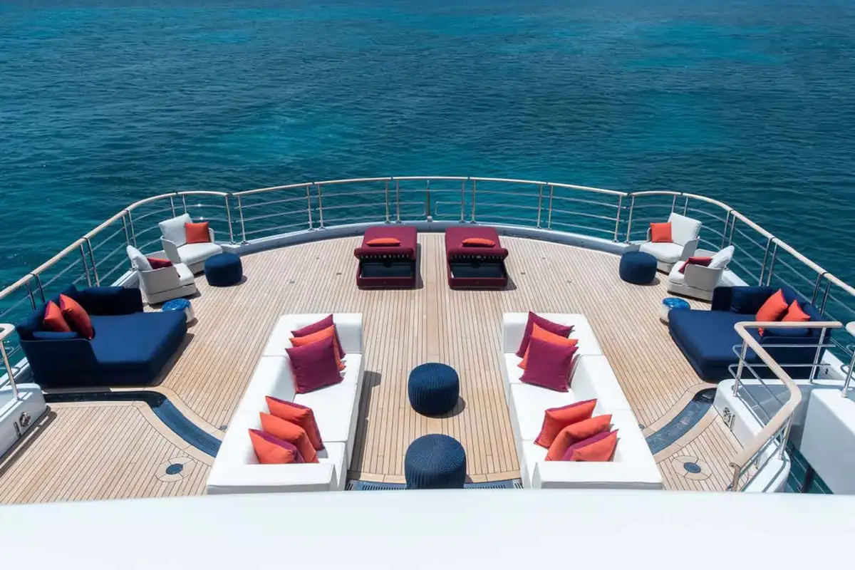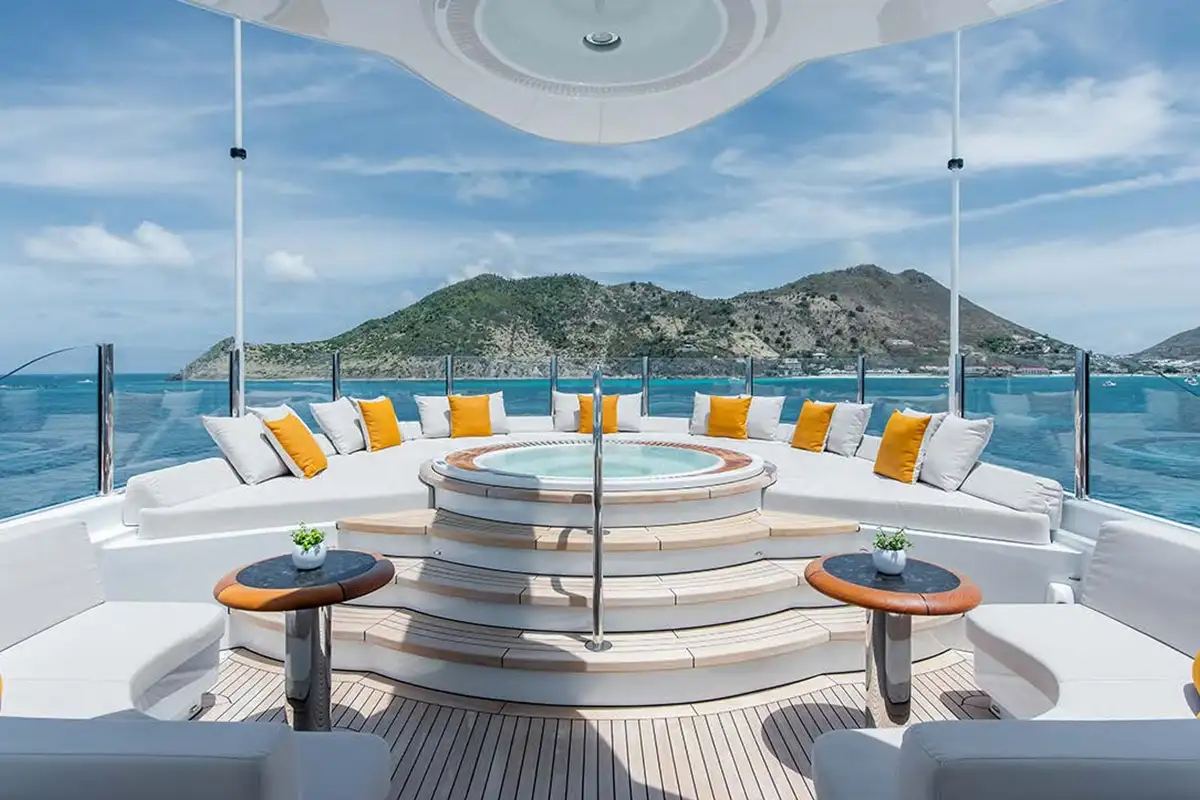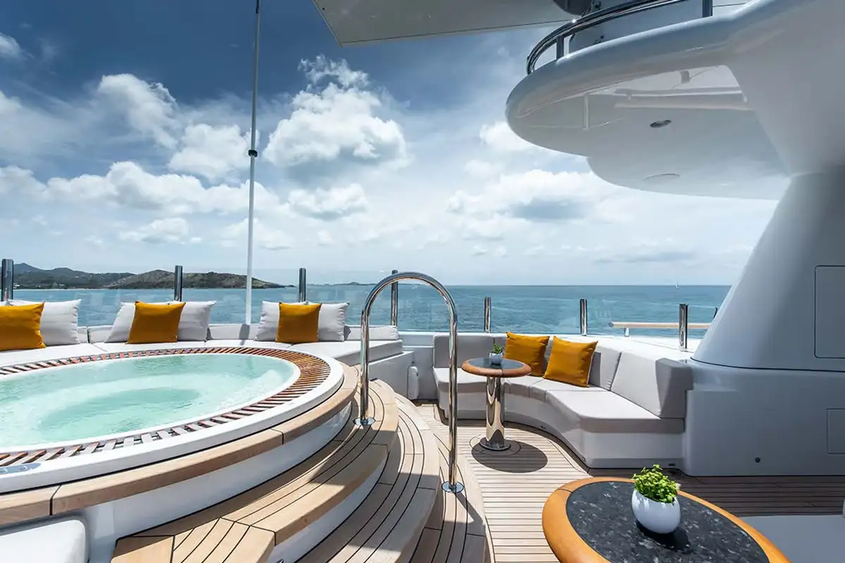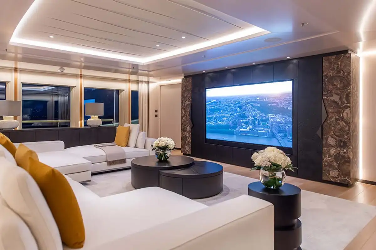 Perhaps you’ll spend some time making the most of the toys that lie waiting in the expansive tender garage, or take the elevator up to watch an evening movie on her outdoor bridge deck cinema. You could dine under the stars on the owner’s deck’s al fresco formal dining area or just relax some more on the sunpad surrounding the sun deck jacuzzi.