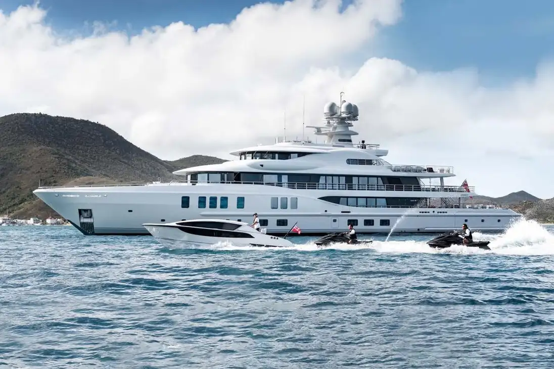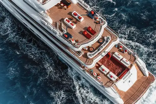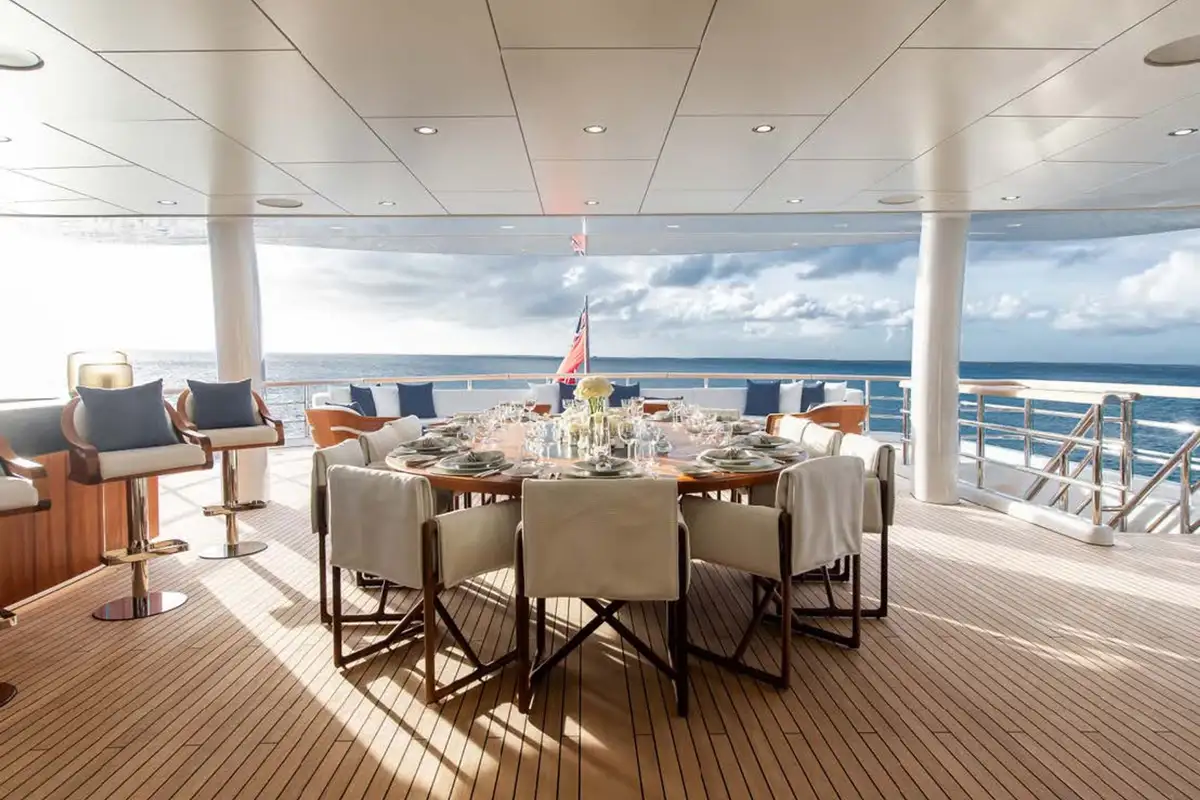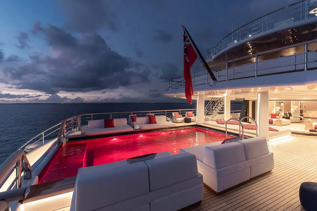 Perhaps you’ll spend some time making the most of the toys that lie waiting in the expansive tender garage, or take the elevator up to watch an evening movie on her outdoor bridge deck cinema. You could dine under the stars on the owner’s deck’s al fresco formal dining area or just relax some more on the sunpad surrounding the sun deck jacuzzi.