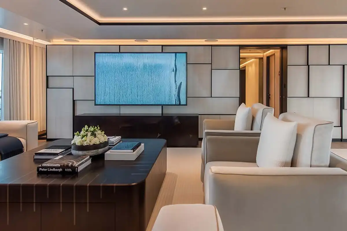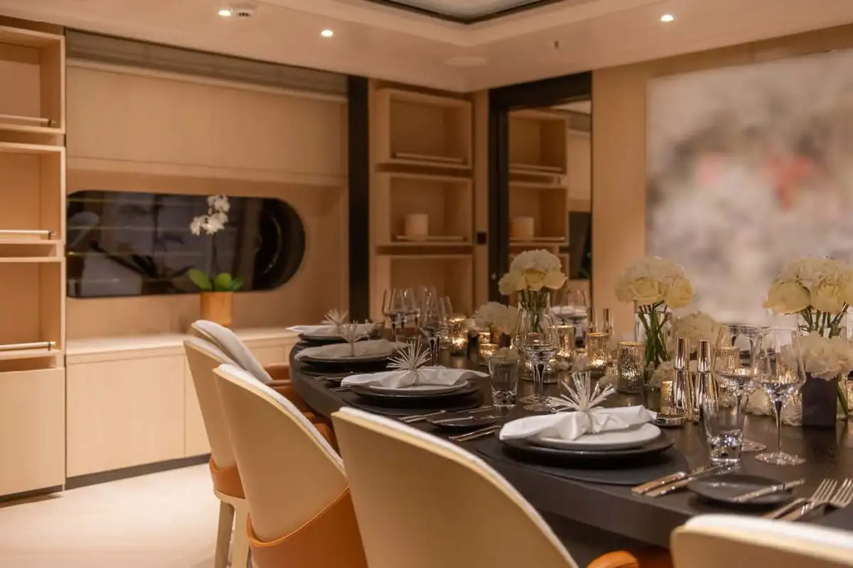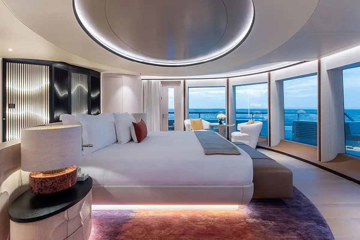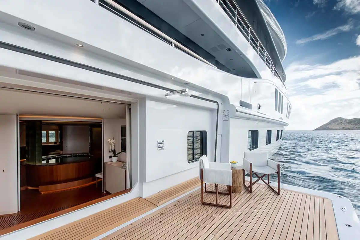On the lower deck is a vast full-beam wellness suite dedicated to unwinding and relaxing. With a massage suite, hammam, sauna, and sea terrace encircling a central spa and sculptural glass centrepiece, you and your guests can find personal time to reflect on what you’ll do next.